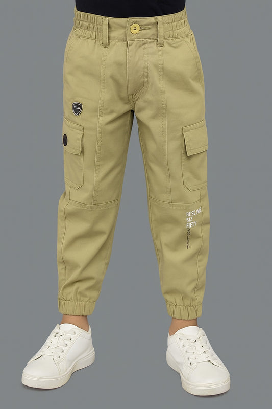 Boys Zipper Detail Elastic Waist Cotton Cargo Trouser
