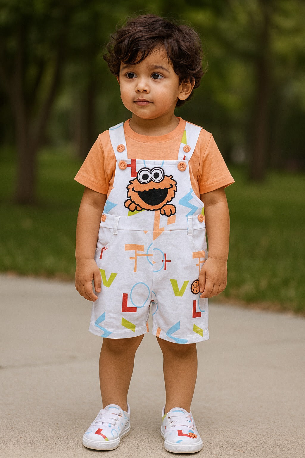 Baby Boys Graphic Printed T-Shirt and Shorts Dungaree Set