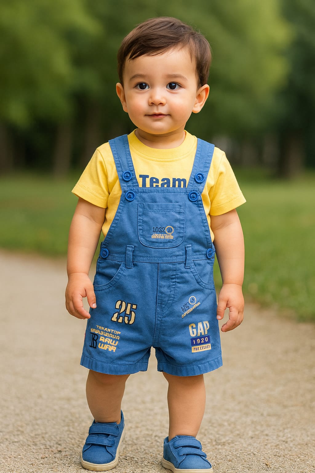 Baby Boys Printed T-Shirt and Shorts Dungaree Set