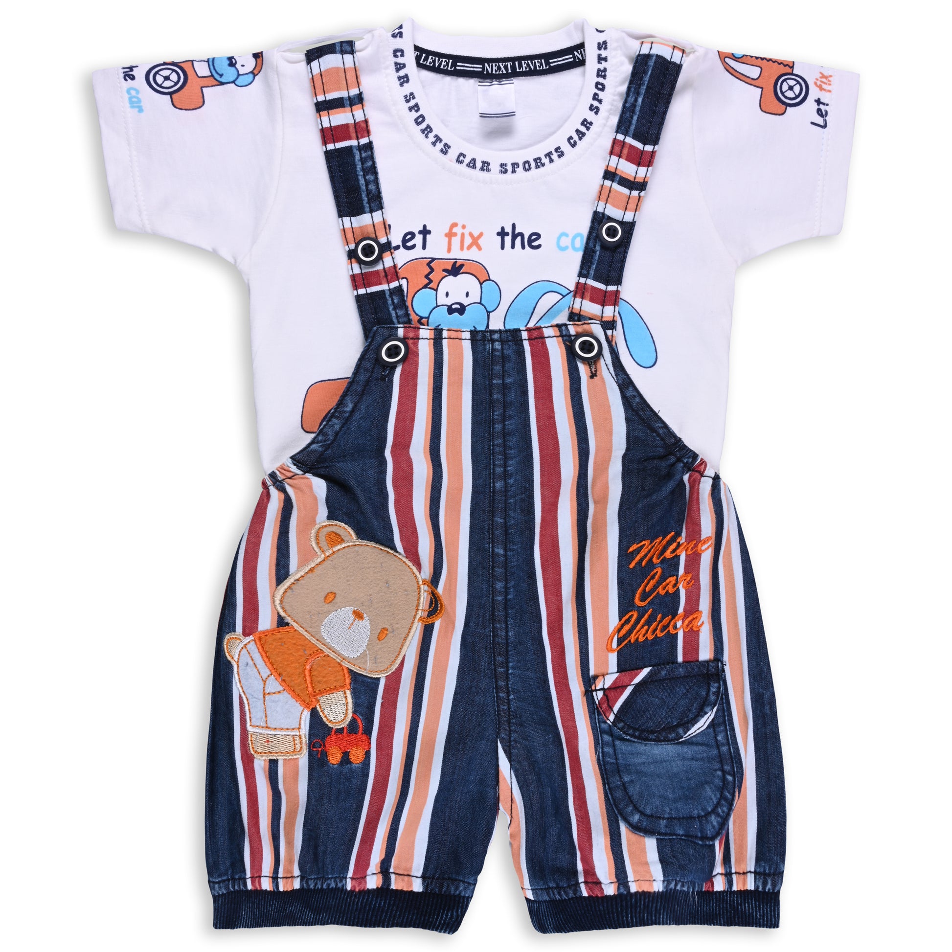 Baby Boys Striped and Applique T-Shirt and Shorts Dungaree Set
