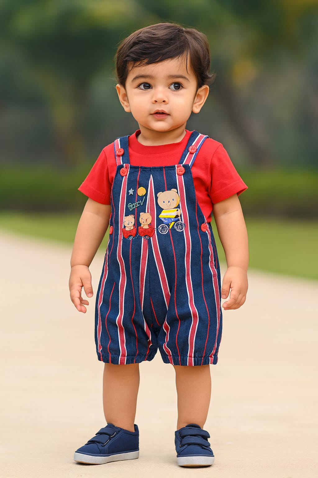 Baby Boys Striped T-Shirt and Shorts Dungaree Set