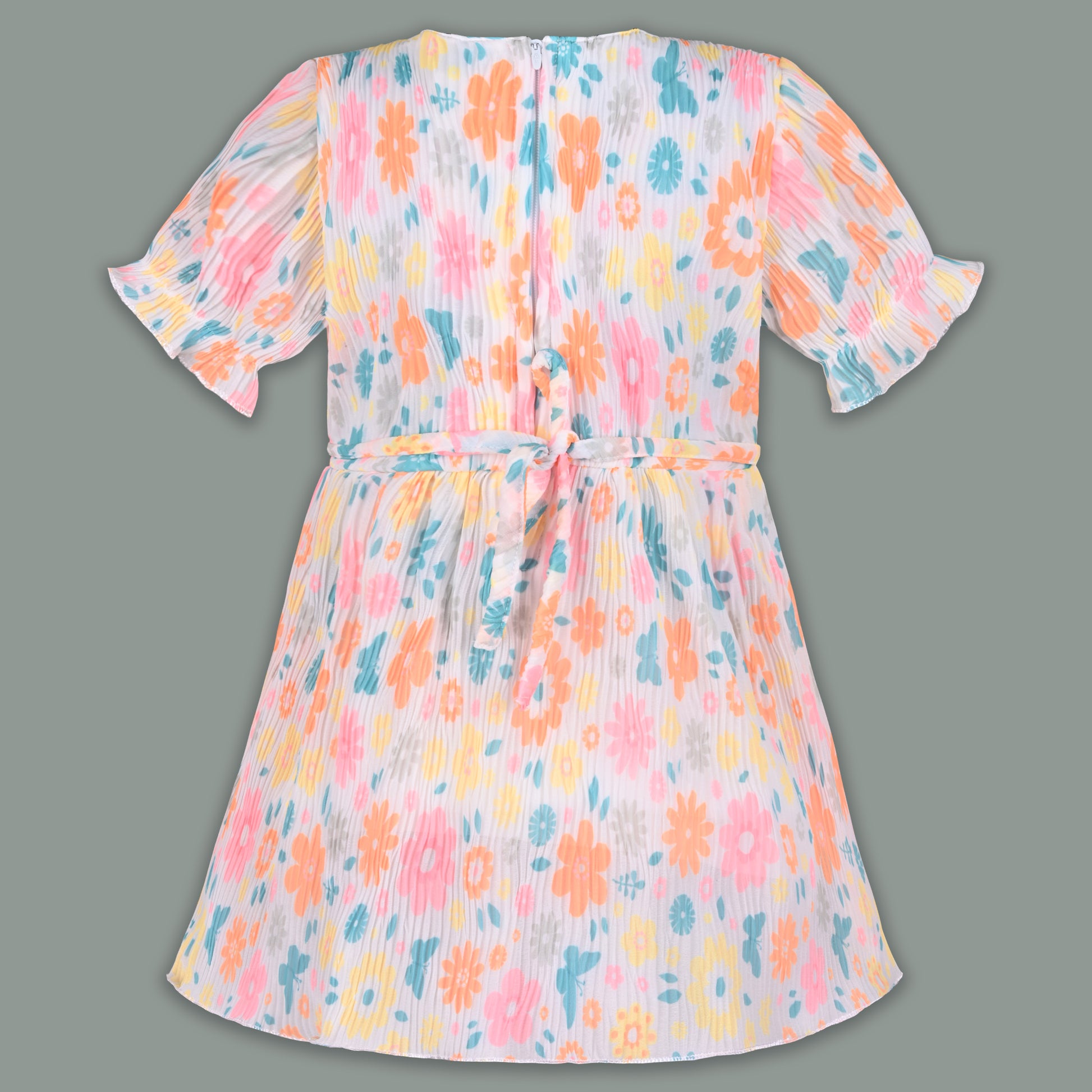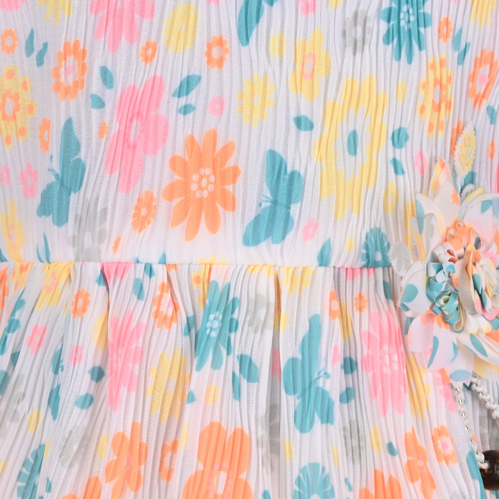 Baby Girl Georgette Floral Print Frock with Puff Sleeves & Bloomers – Party Wear Dress for Kids