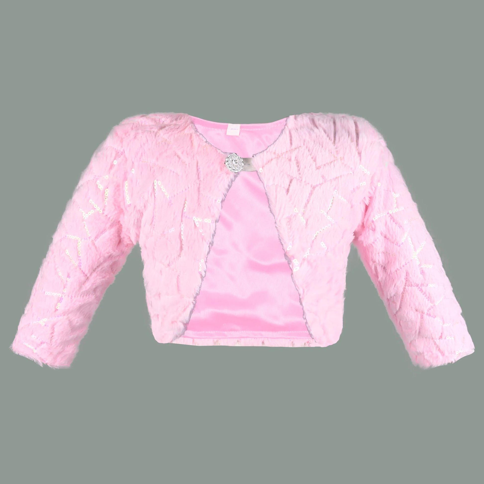 Baby Girls Fur Party Wear Shrug | Soft Faux Fur Jacket with Sequins | Winter Wedding & Festive Outfit