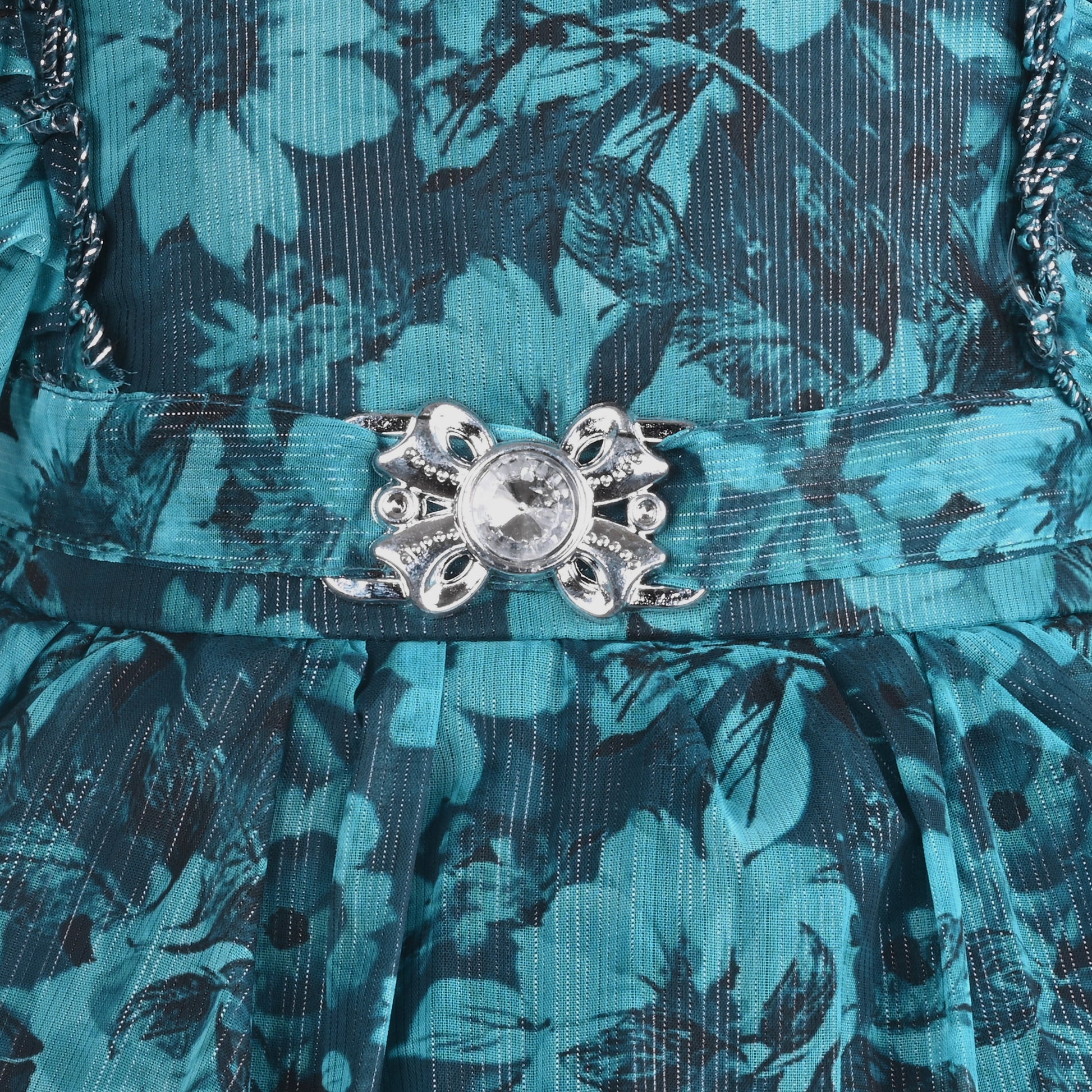 Make your little princess stand out at every celebration with this stunning Baby Girls Georgette Party Wear Dress. Crafted from premium georgette fabric, the dress features a beautiful teal floral print that gives it a soft, flowy, and elegant look—perfect for parties, birthdays, and festive occasions.