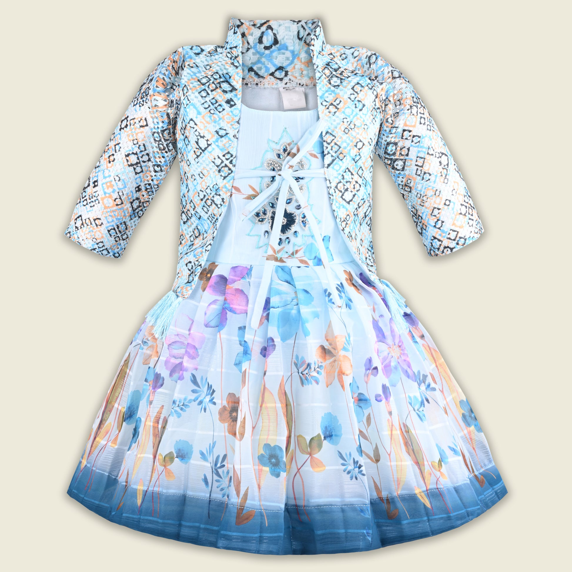 Baby Girls Georgette Party Wear Dress with Jacket | Floral Printed Frock & Embellished Inner Dress | Birthday & Festive Outfit