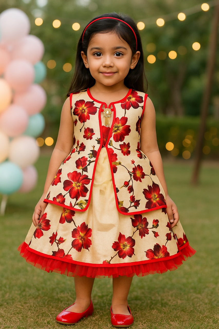 Dress her in timeless elegance with this Baby Girl Navratri Dress – a bead embellished printed silk ethnic outfit that beautifully blends traditional charm with festive flair. Made from rich silk fabric, it features an intricate all-over print and delicate bead embellishments that enhance its celebratory look. Soft, comfortable, and gracefully designed, it’s perfect for Navratri, weddings, festivals, or special family events. The ethnic cut ensures a flattering fit, while the thoughtful detailing makes it a standout piece in her festive wardrobe.