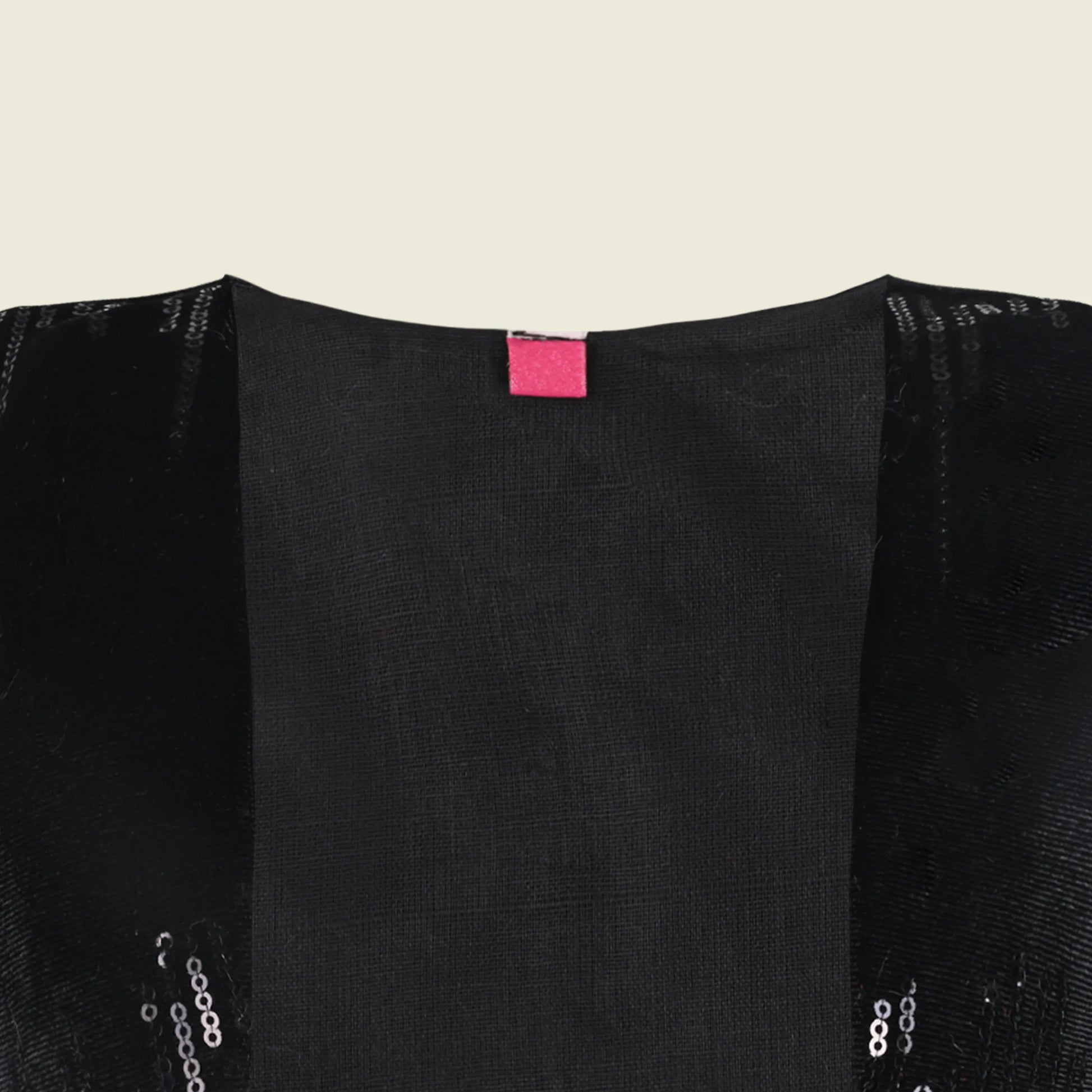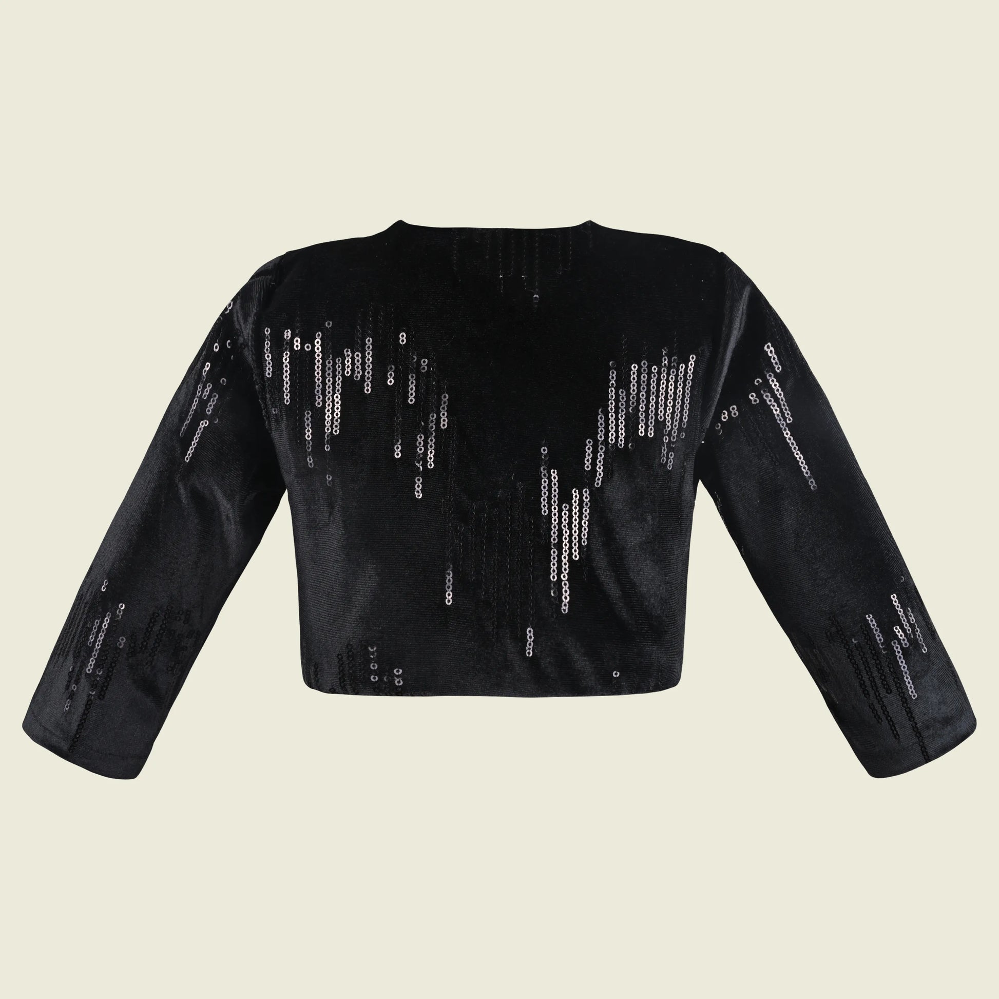Baby Girls Velvet Party Shrug | Black Velvet Sequin Jacket for Gowns & Ethnic Dresses | Wedding & Festive Wear