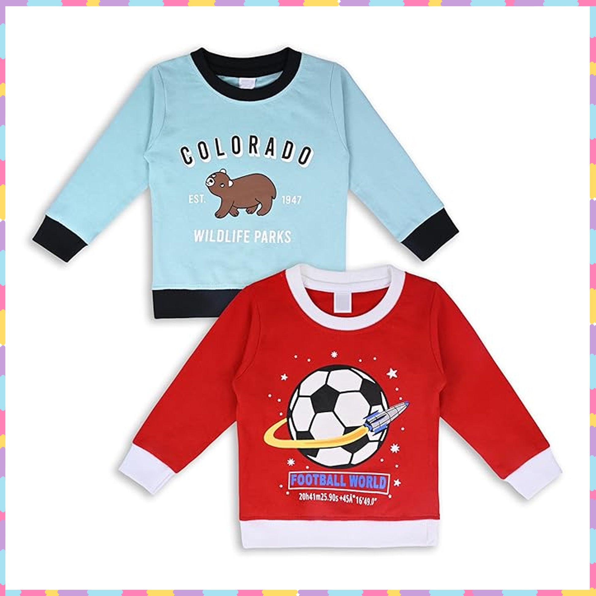 Get your kids stylish and cozy with our Pack of 2 Typography Printed Sweatshirts. Rounded Neck and Full Sleeves offer warmth and comfort while Typography adds a trendy touch. Perfect for boys and girls, these sweatshirts are a must-have for any wardrobe.