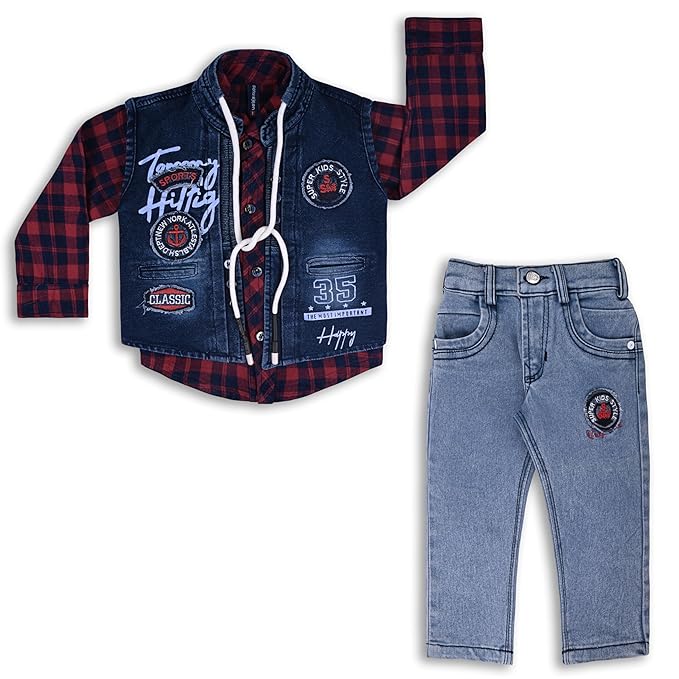 Dress your little one in style with our Boys Checked Shirt Clothing Set! This set includes a full-sleeve checked shirt and full jeans pant for a complete and stylish look. Made for comfort and durability, this clothing set is perfect for any occasion.
