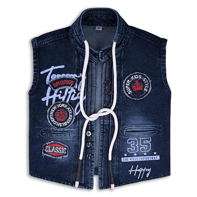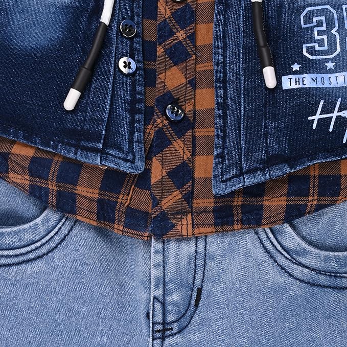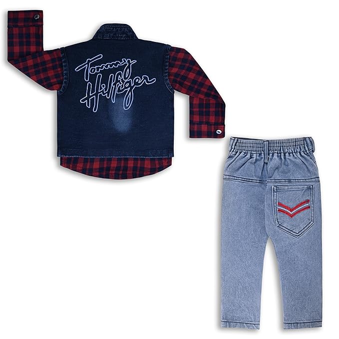 Boys Checked Shirt Clothing Set With Denim Waist Coat