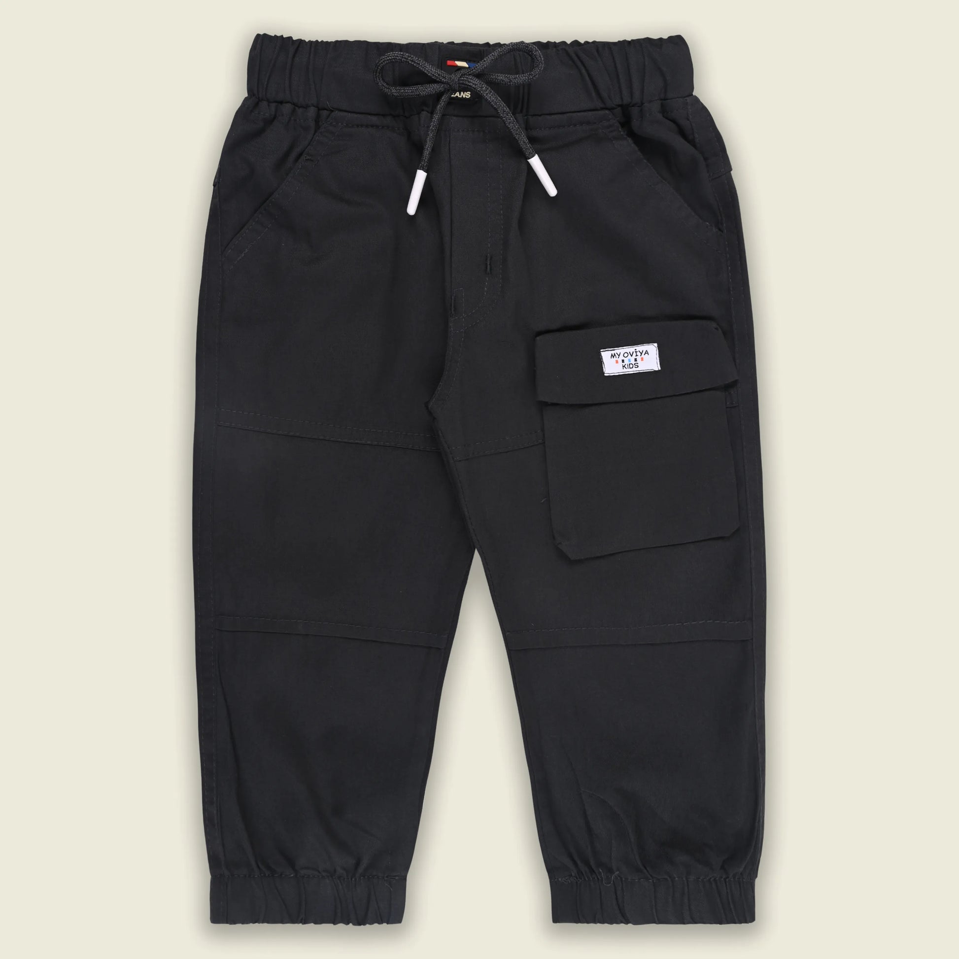 Boys Cotton Cargo Jogger Pants with Drawstring
