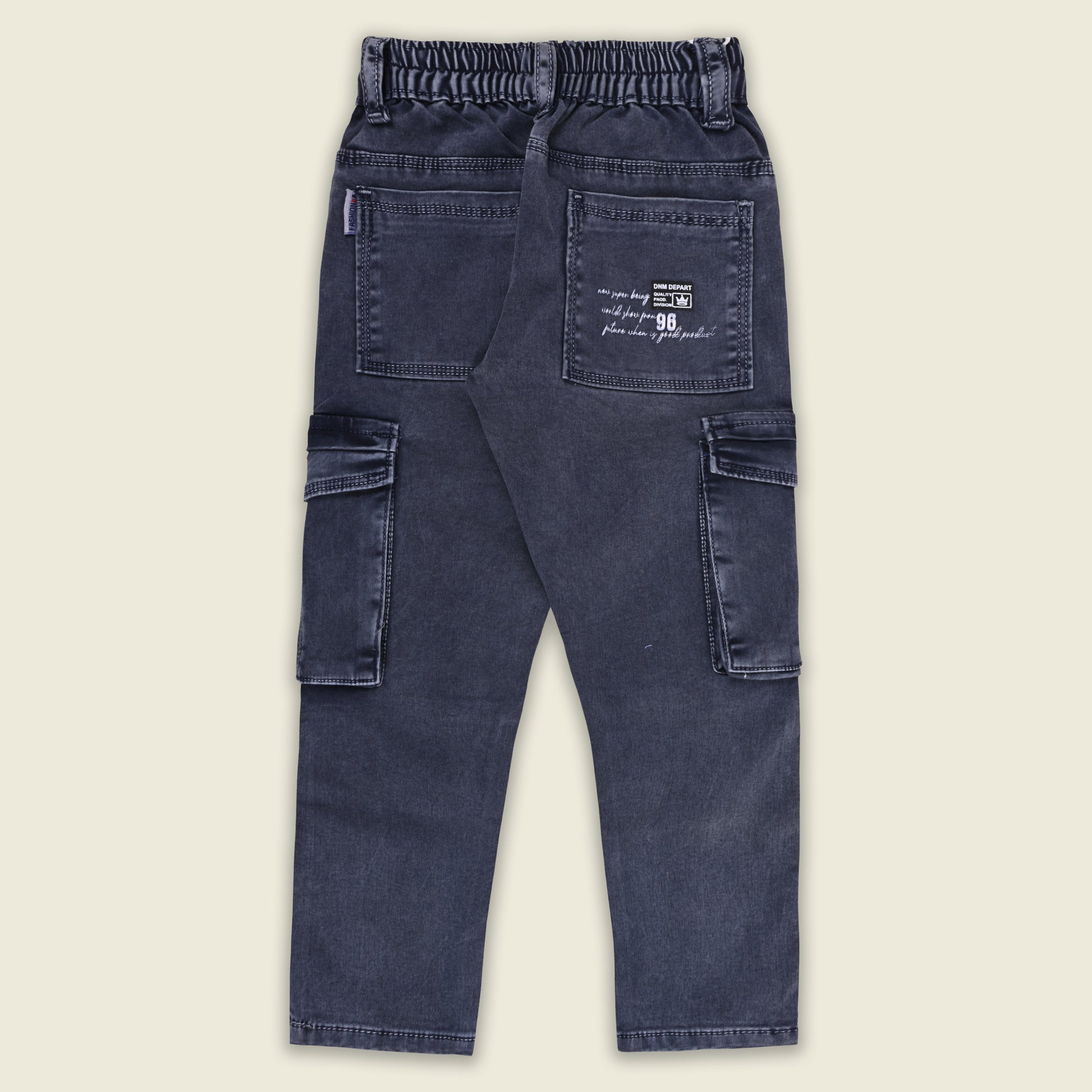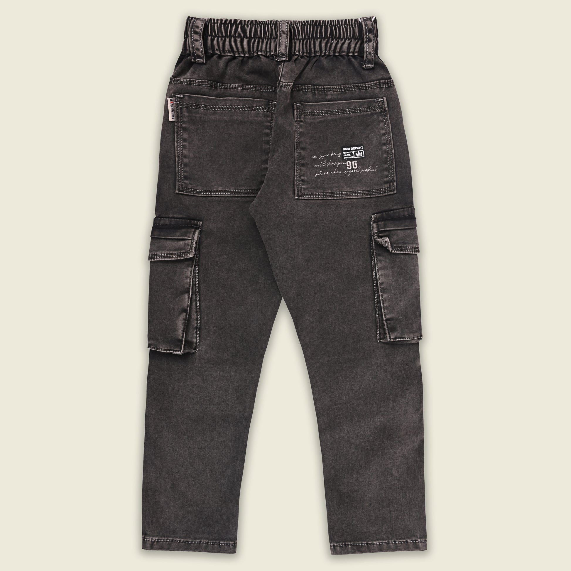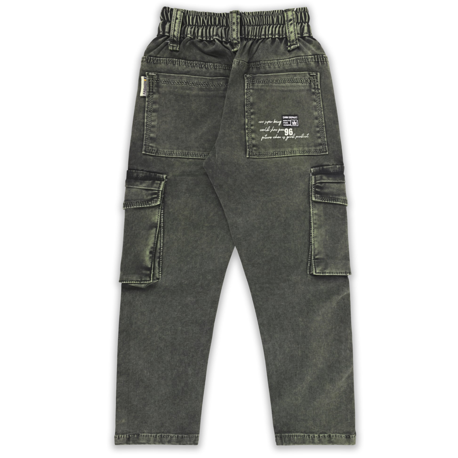 Give your little champ a trendy upgrade with these dark green cotton denim cargo pants. Made from soft, breathable, and stretchable fabric, these jeans ensure comfort through all-day wear. Comes with a detachable belt, multiple cargo pockets, and an elastic waistband for a perfect fit. Ideal for school, outings, or casual wear.