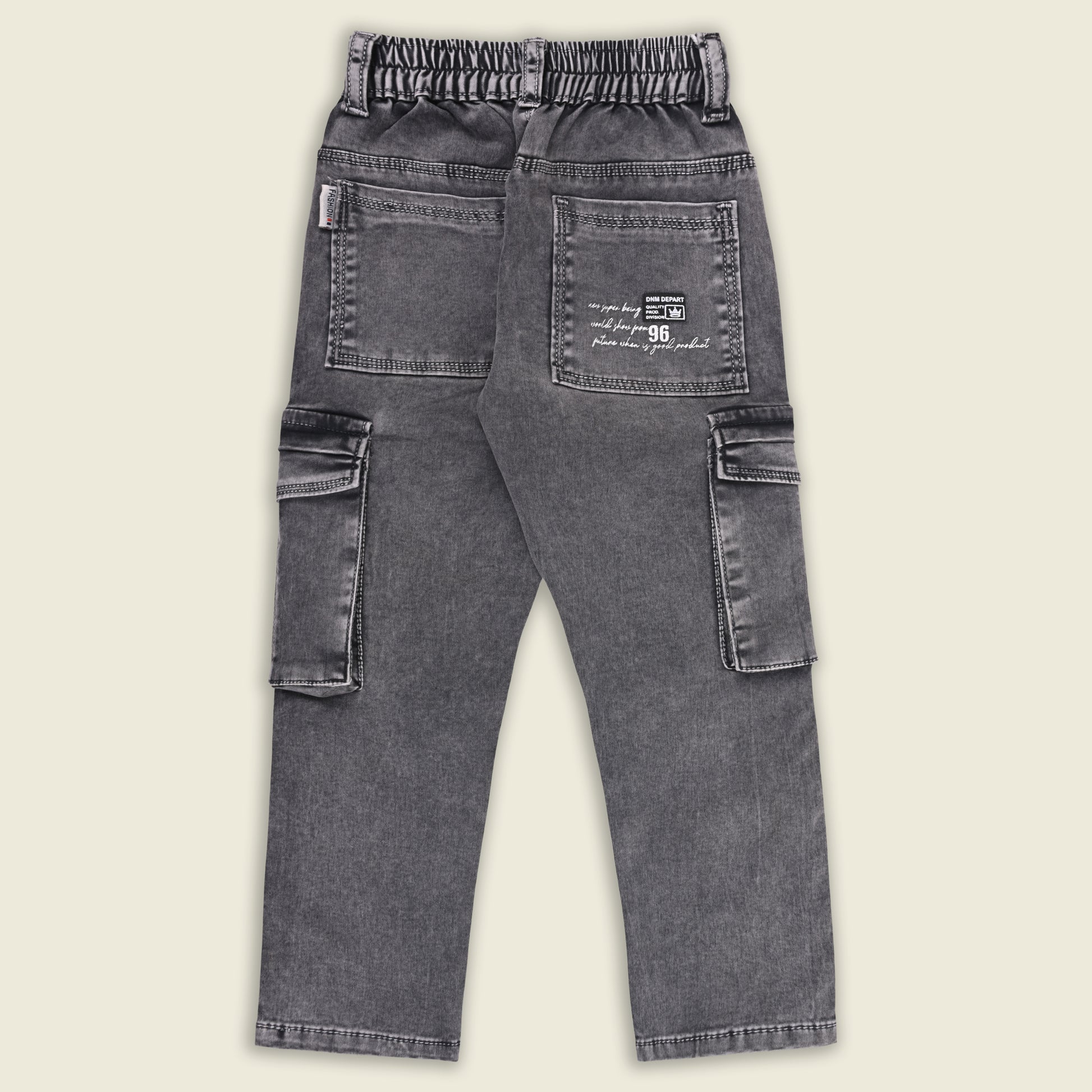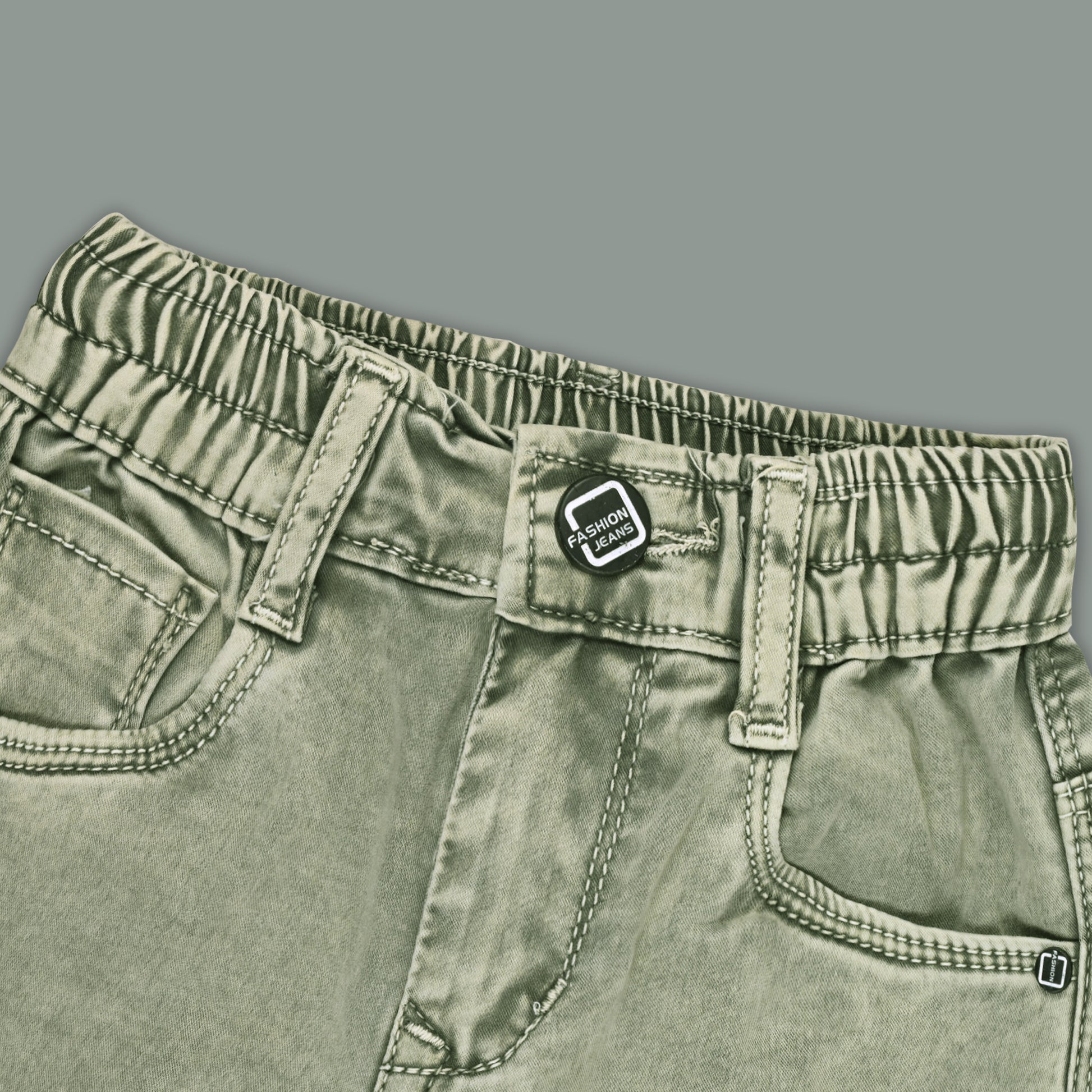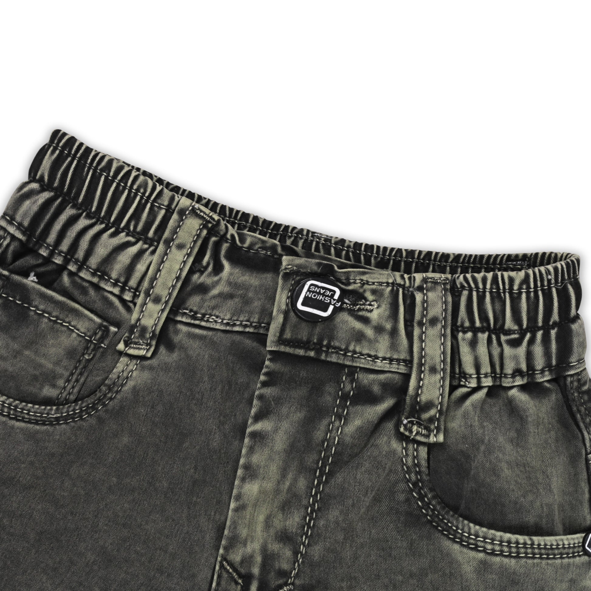 Give your little champ a trendy upgrade with these dark green cotton denim cargo pants. Made from soft, breathable, and stretchable fabric, these jeans ensure comfort through all-day wear. Comes with a detachable belt, multiple cargo pockets, and an elastic waistband for a perfect fit. Ideal for school, outings, or casual wear.