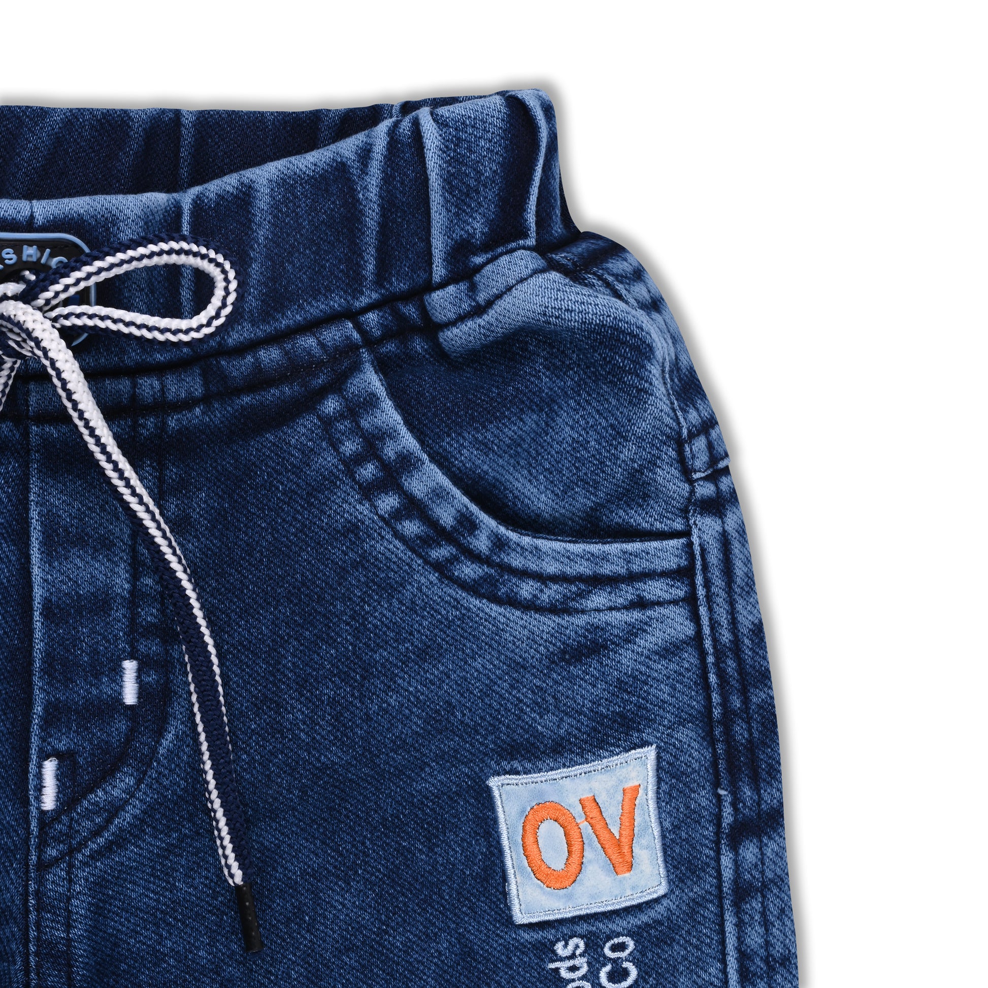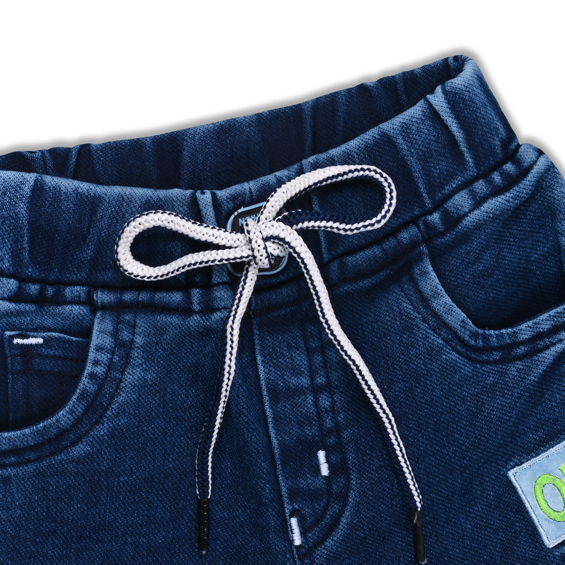 Boys’ Denim Regular Pants with Drawstring Waist & Printed Pattern – Full Length