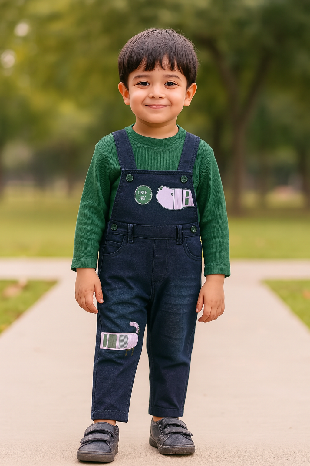 This boysβ set features a soft cotton cartoon embroidered full sleeve T-shirt paired with a comfortable denim dungaree, creating a fun and playful outfit. Perfect for casual outings, birthdays, and summer days, it keeps your little one stylish and comfortable all day.