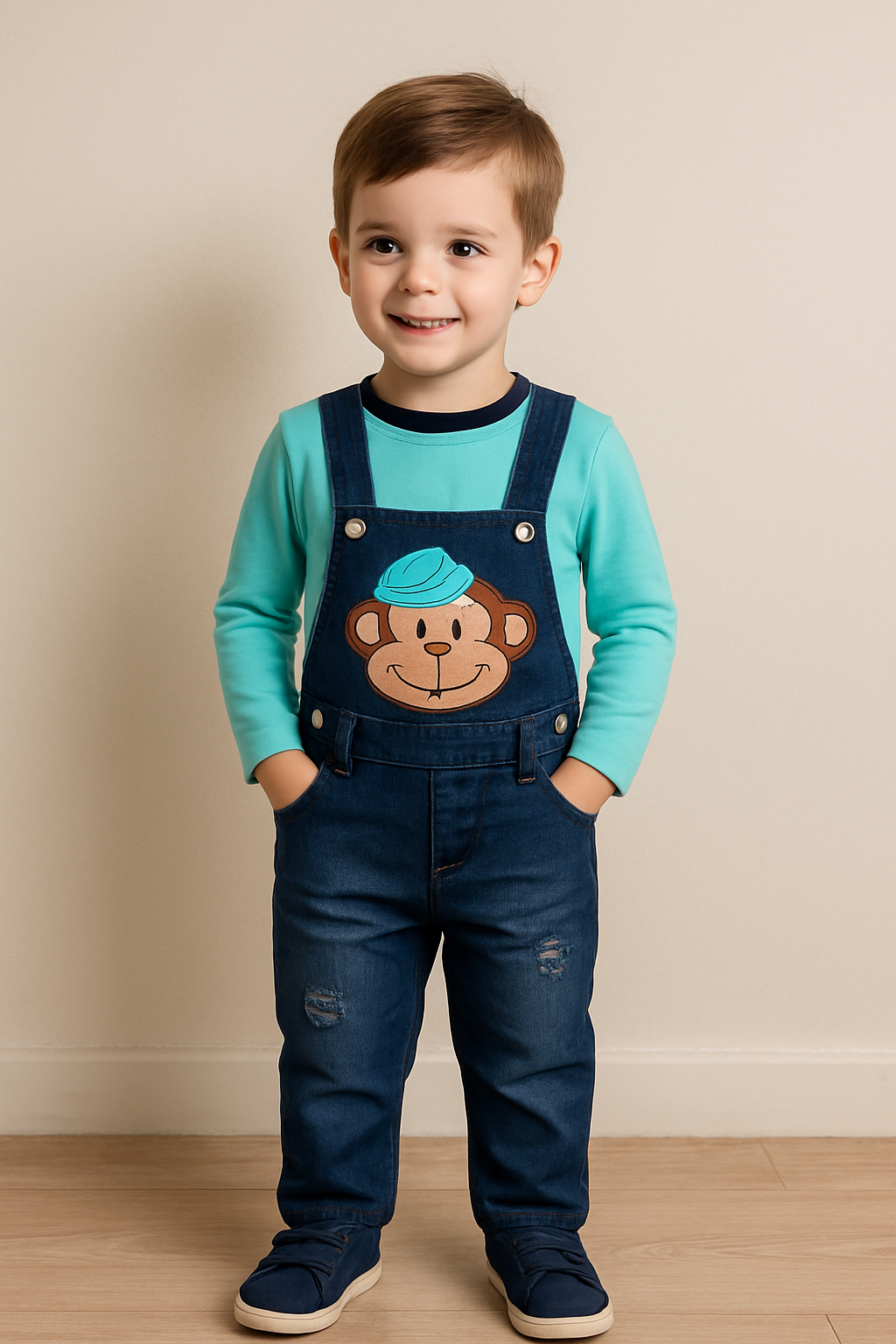 This boys’ set features a soft cotton cartoon embroidered full sleeve T-shirt paired with a comfortable denim dungaree, creating a fun and playful outfit. Perfect for casual outings, birthdays, and summer days, it keeps your little one stylish and comfortable all day.