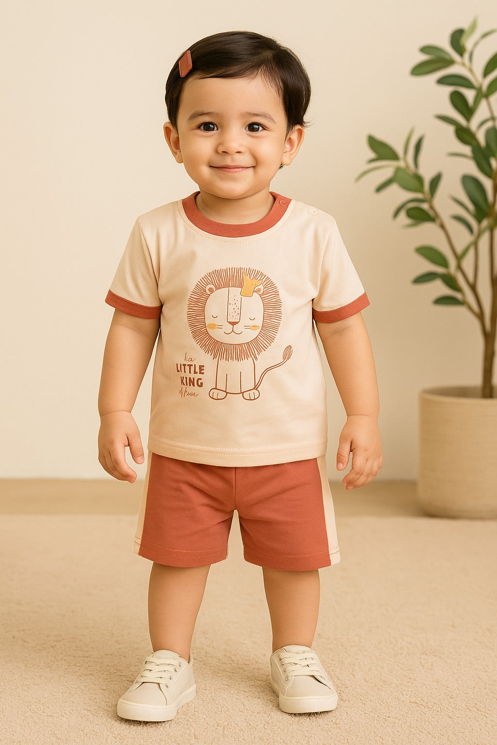Dress your little boy for cool comfort and bright style with this boys’ printed cotton tank and shorts set. Crafted from 100% breathable cotton, the tshirt boasts lively prints that bring a cheerful summer vibe. The elasticated shorts offer a comfy fit and freedom of movement—whether he’s running at the park, playing at the beach, or relaxing at home. Style this set with sneakers or sandals for a complete warm-weather look.