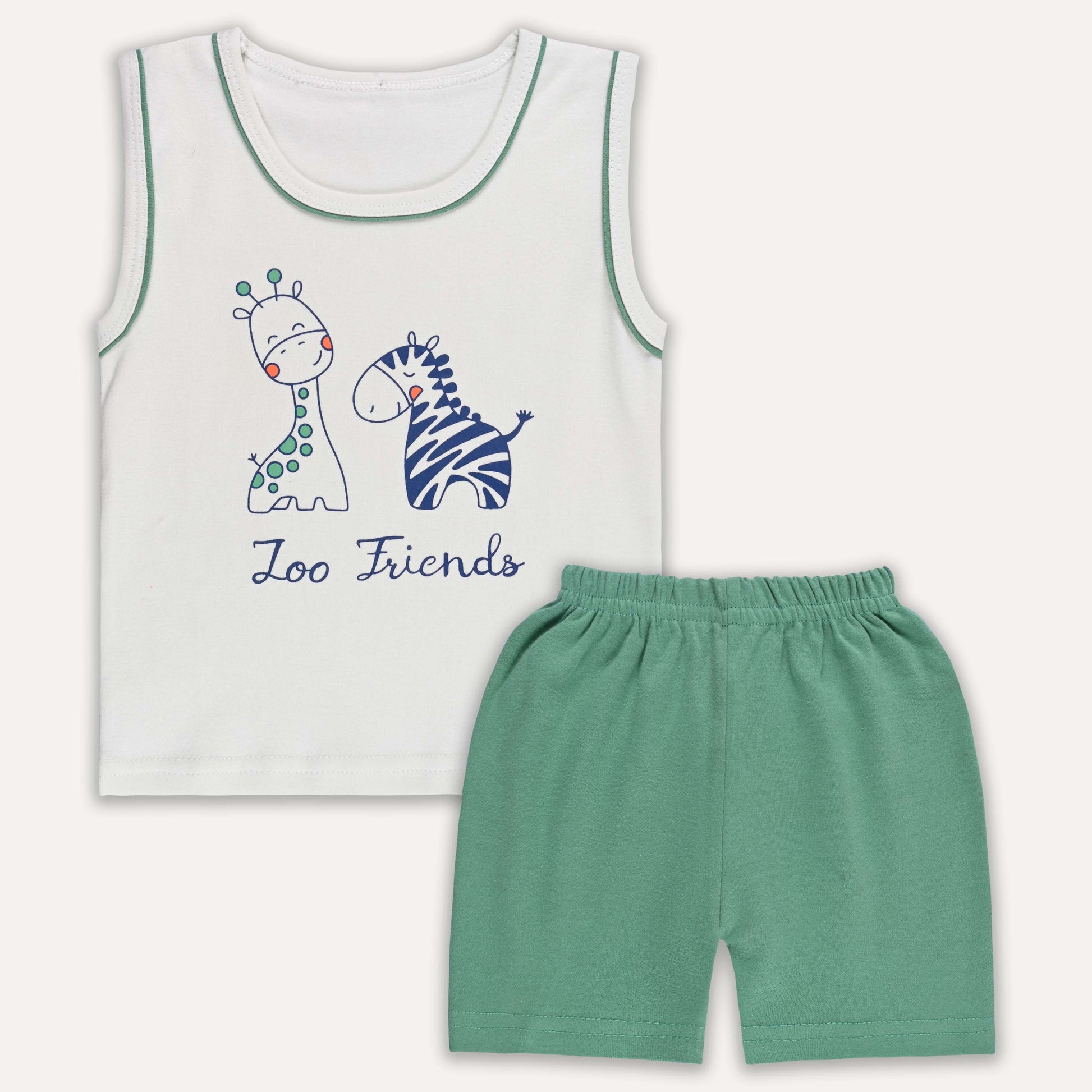 Keep your little boy cool, comfy, and stylish with this printed cotton tank shirt and shorts set. Crafted from soft, breathable cotton, the sleeveless tank features a playful animal print, while the matching shorts ensure ease of movement and a secure fit. Designed for summer days, outdoor fun, or relaxed home wear, this set pairs perfectly with sneakers or sandals for a fresh, trendy look.
