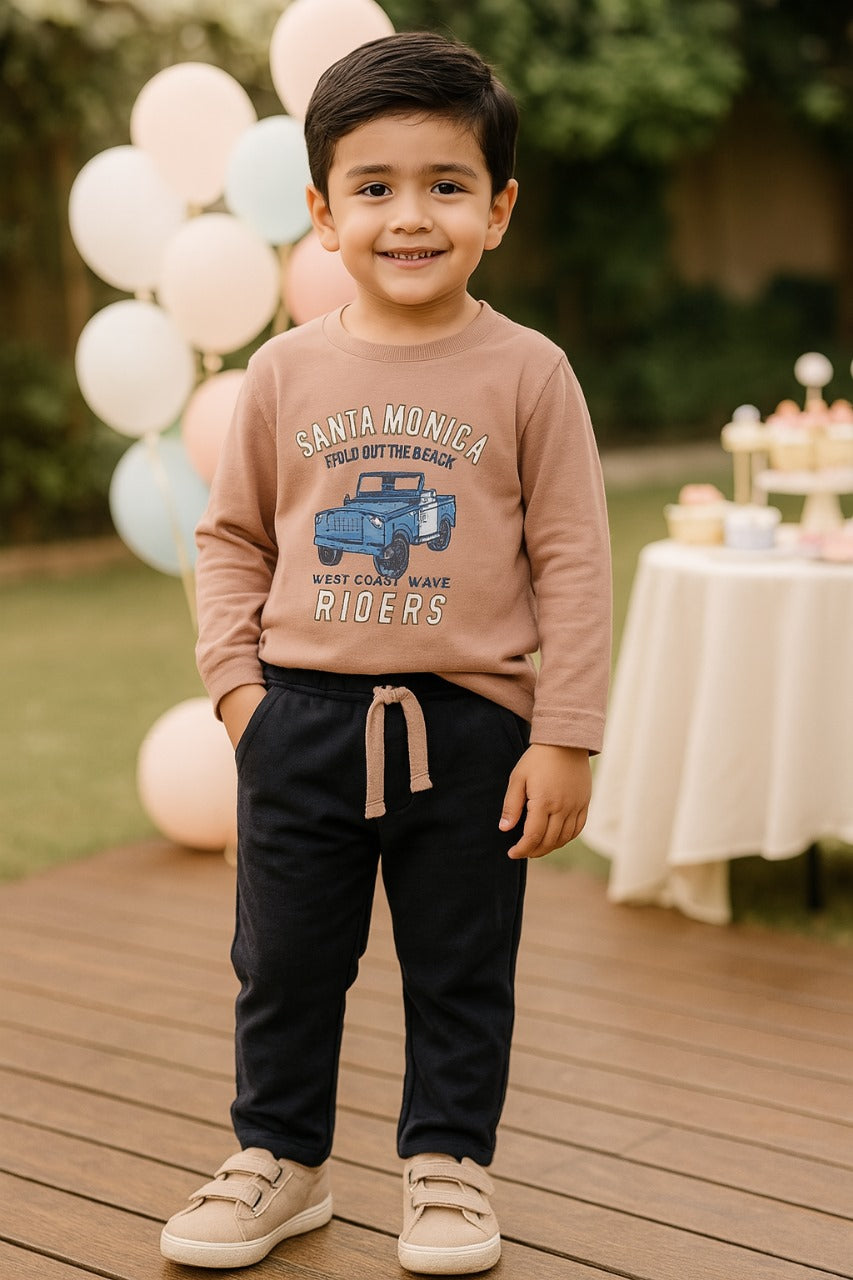 Dress your little one in this stylish Boys Printed T-Shirt and Pant Clothing Set. Made with soft and breathable fabric, this set will keep your child comfortable all day. The playful print adds a fun touch to their wardrobe and makes getting dressed a breeze. Perfect for any occasion!