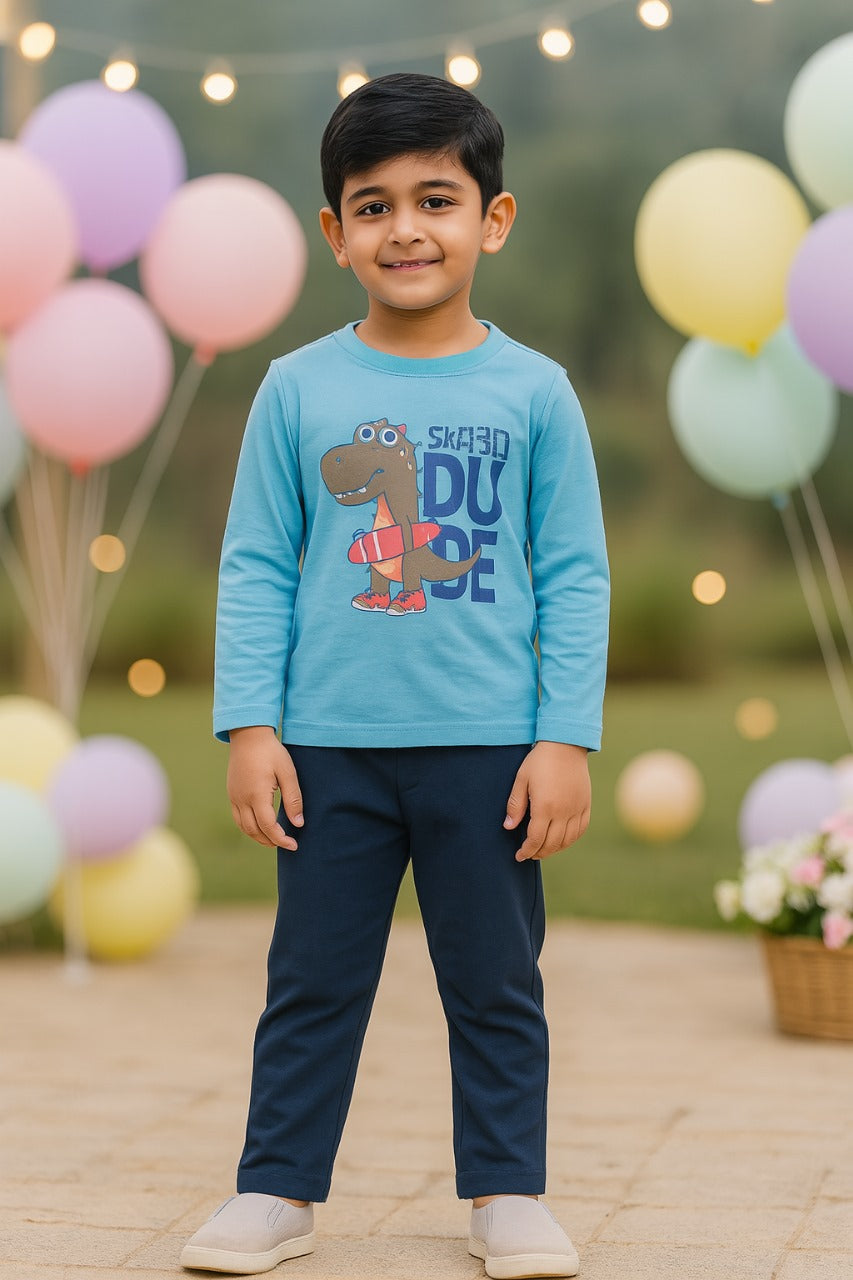 This set includes a stylish printed t-shirt and comfortable pant for boys. Perfect for everyday wear, this set offers both fashion and functionality. Made with high-quality materials, it provides lasting comfort for your little one. Dress him in this set for a cool and effortless look.