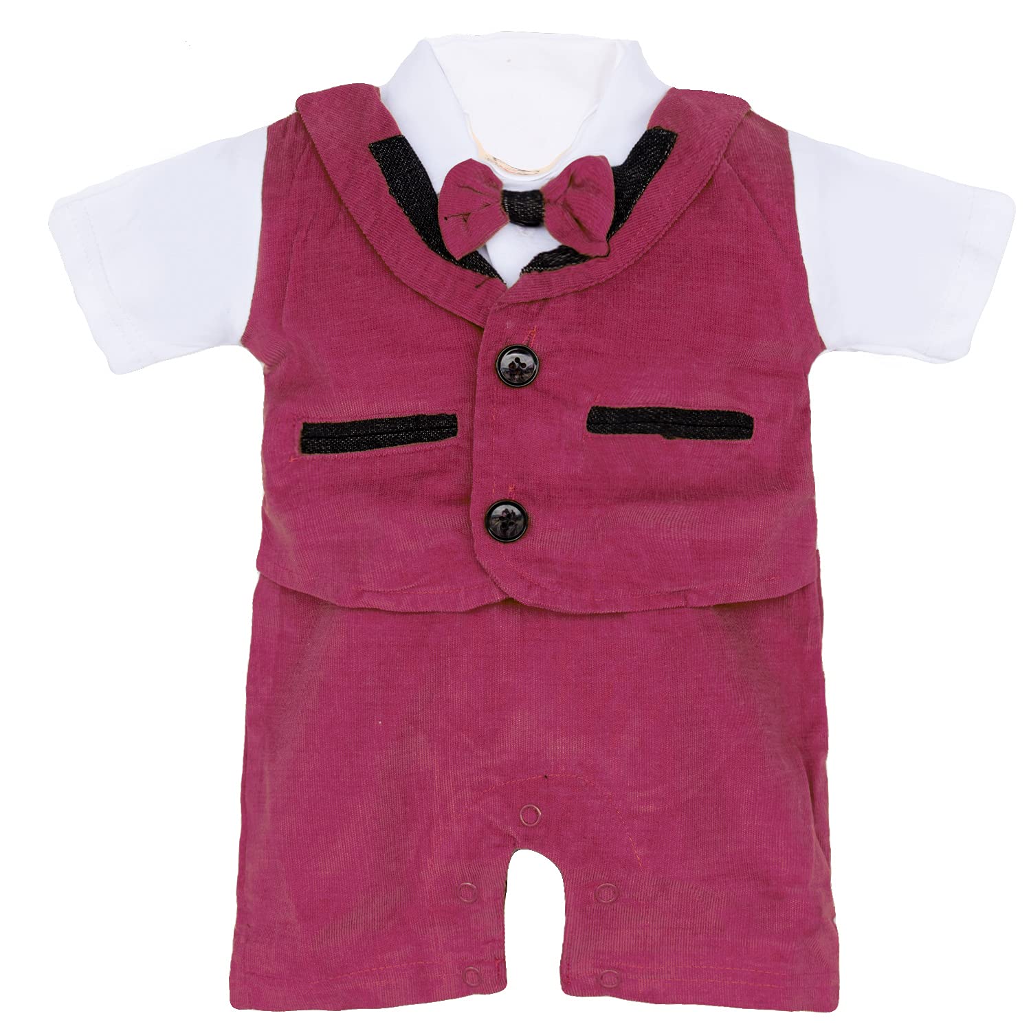 Dress your little gentleman with style in our Boys Rompers! Made with a shirt collar and short sleeves, your little one will look dapper and stay cool. The added bow-tie completes the look for a touch of sophistication. Perfect for any special occasion!
