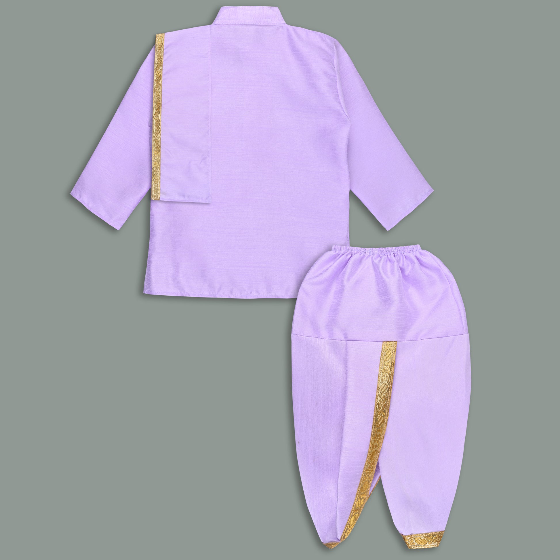 Boys Traditional Art Silk Kurta and Dhoti Set – Gold Detailing