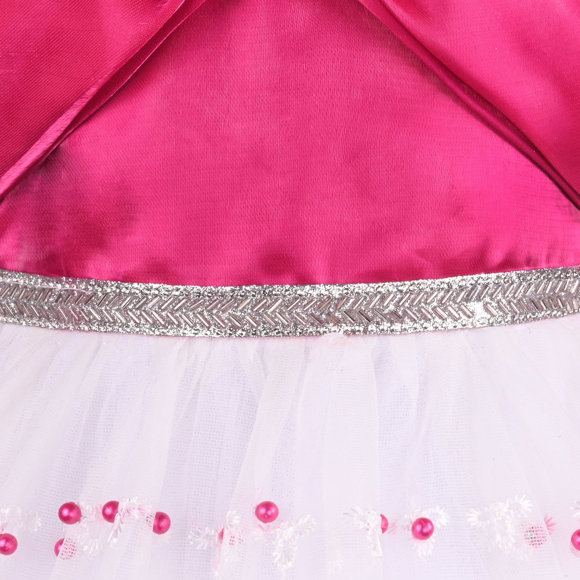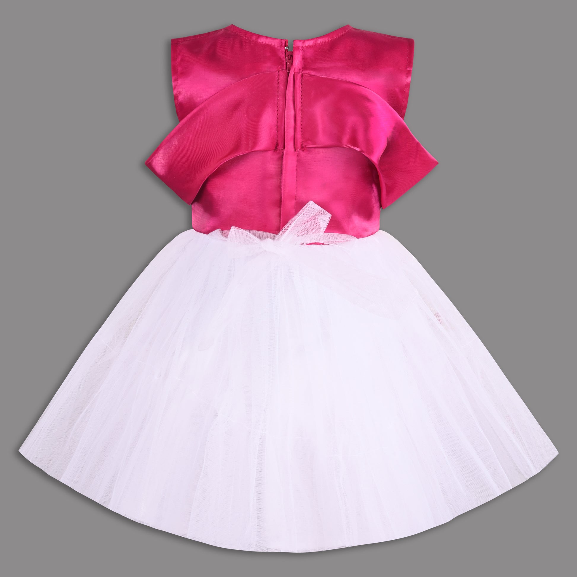 Elegant Satin & Net Party Dress for Girls – Sleeveless Design with Bow and Embellished Lace Skirt