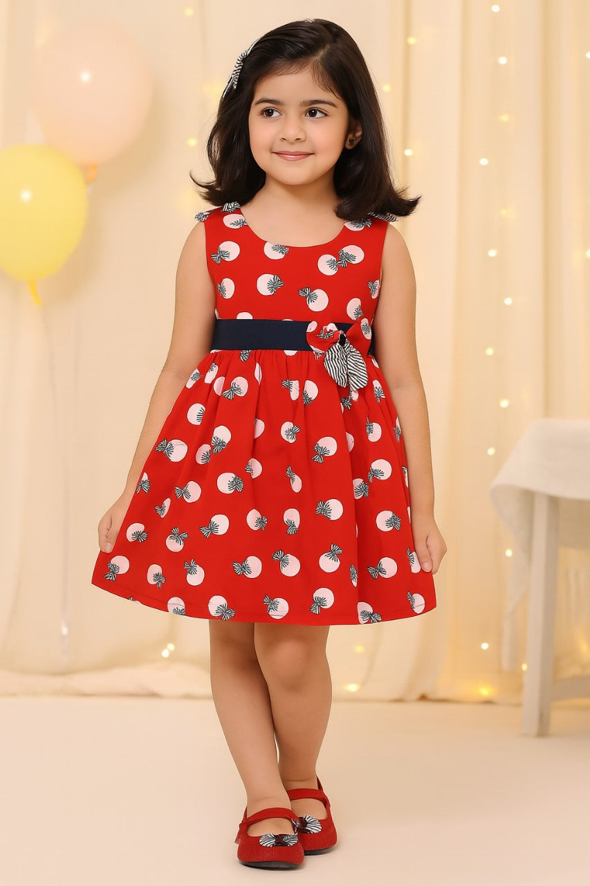 Let your little one breeze through summer in style with this Girls Cotton Printed Bow Flared Dress. Crafted from soft, breathable cotton, this dress is designed for maximum comfort and cuteness. The fun print, flattering flared fit, and sweet bow detail make it a go-to choice for sunny days, playdates, and casual occasions. An ideal mix of playful and practical for any girl's summer wardrobe.