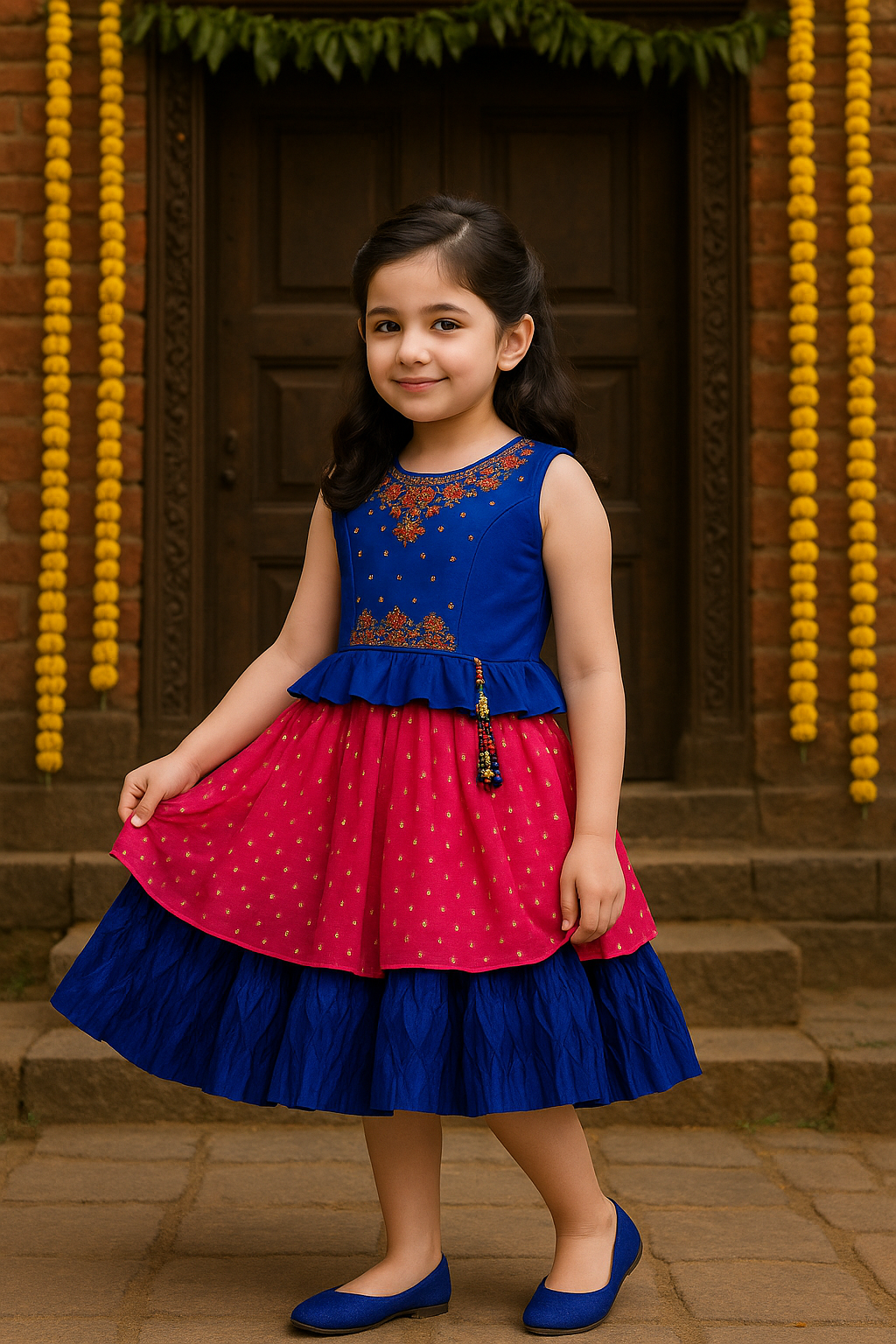 Girls Beaded Embellished Ruffle Waist Layered Ethnic Dress