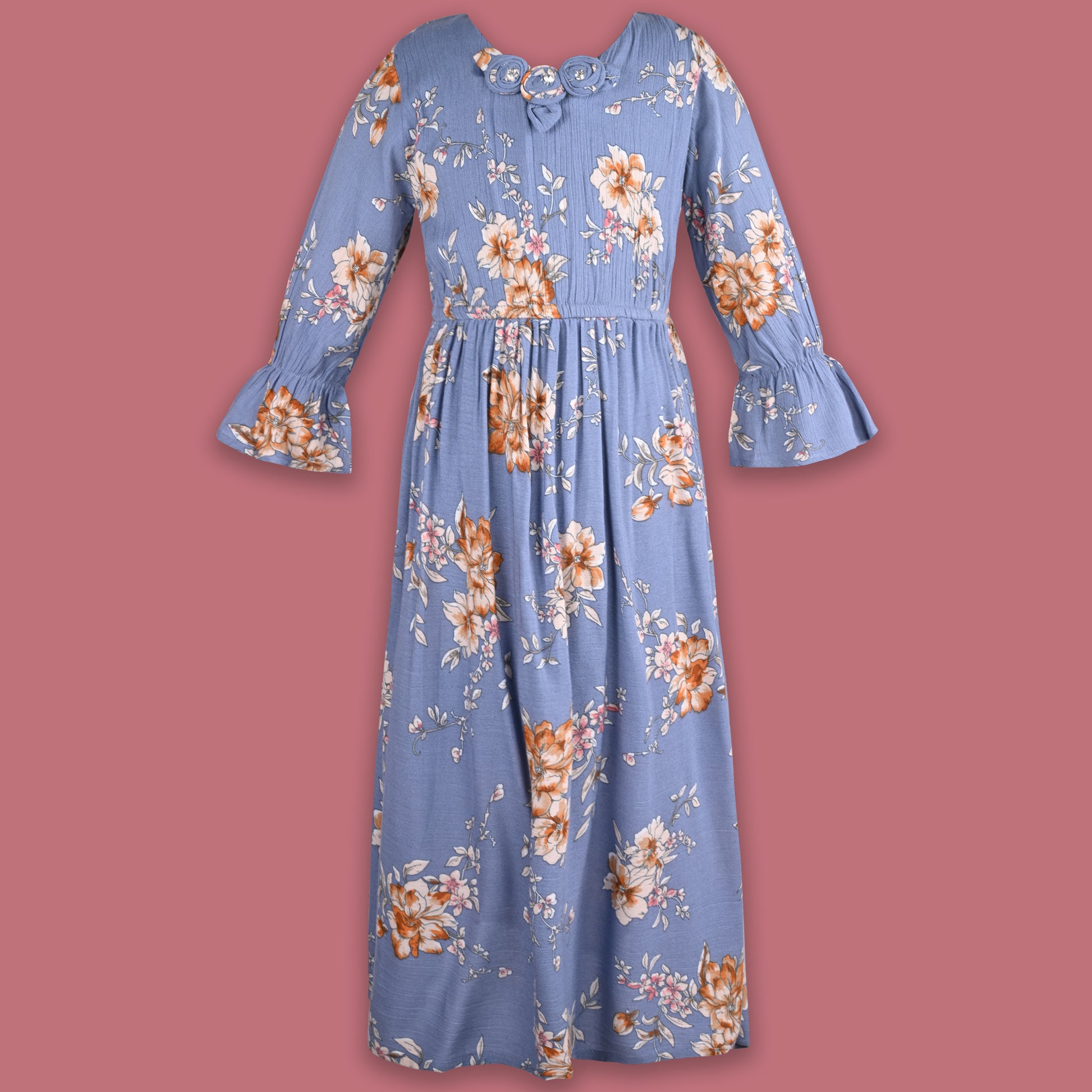 Girls Bell Sleeve Floral Print Fit and Flare Frock Dress