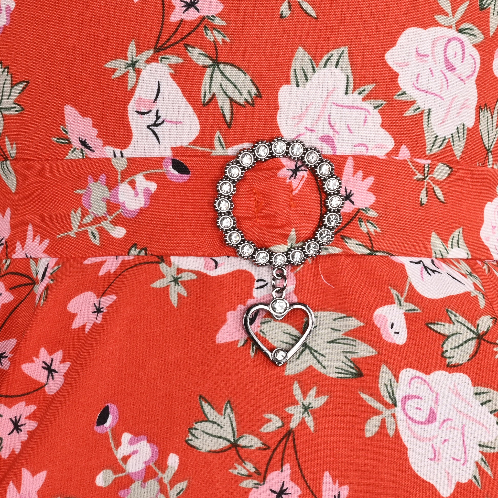 Girls Bell Sleeve Floral Print Fit and Flare Frock Dress
