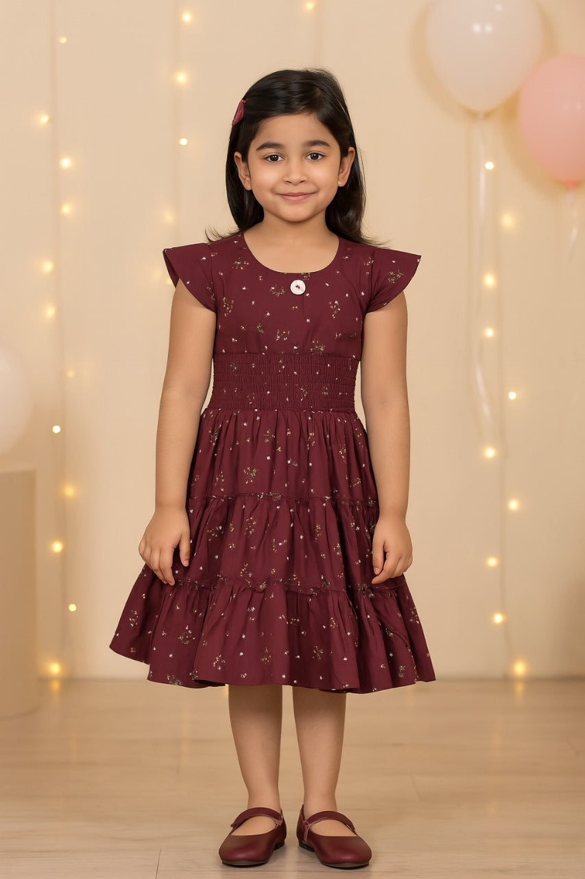 This girls' floral printed rayon summer dress is the perfect blend of comfort and style for warm, sunny days. Made from lightweight and breathable rayon fabric with smocked waist for the perfect fit, cap sleeves and round neck, it keeps your little one cool and comfortable all day long. The dress features a vibrant floral print, adding a fresh and cheerful touch to her wardrobe. Designed with a flowy silhouette, it allows easy movement, making it ideal for playdates, picnics, and casual outings. Details like tiered skirt and a smocked bodice enhance its charm. Pair it with sandals or sneakers for an effortlessly cute summer look. Available in various sizes and colors.