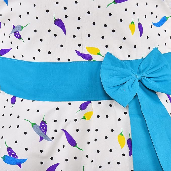 Add a playful charm to your little girl’s wardrobe with this cotton printed frock, perfect for warm summer days. Crafted from soft, breathable cotton fabric, this dress features a cute polka dot base with colorful abstract prints, flutter sleeves, and a contrast waist belt tied into a stylish bow. The flared silhouette offers all-day comfort and easy movement, making it ideal for casual outings as well as special occasions.