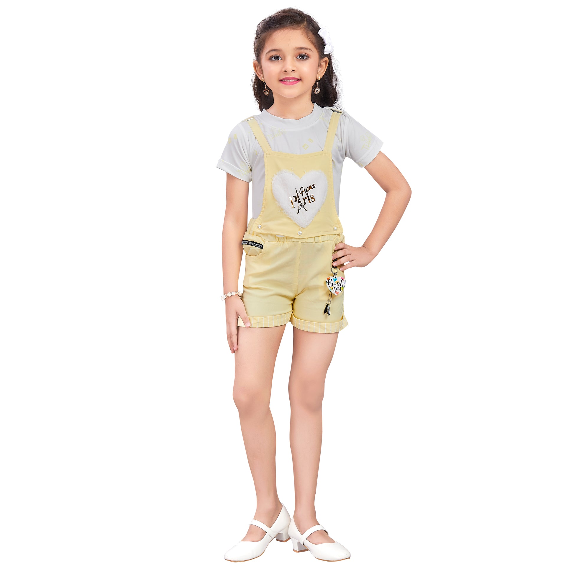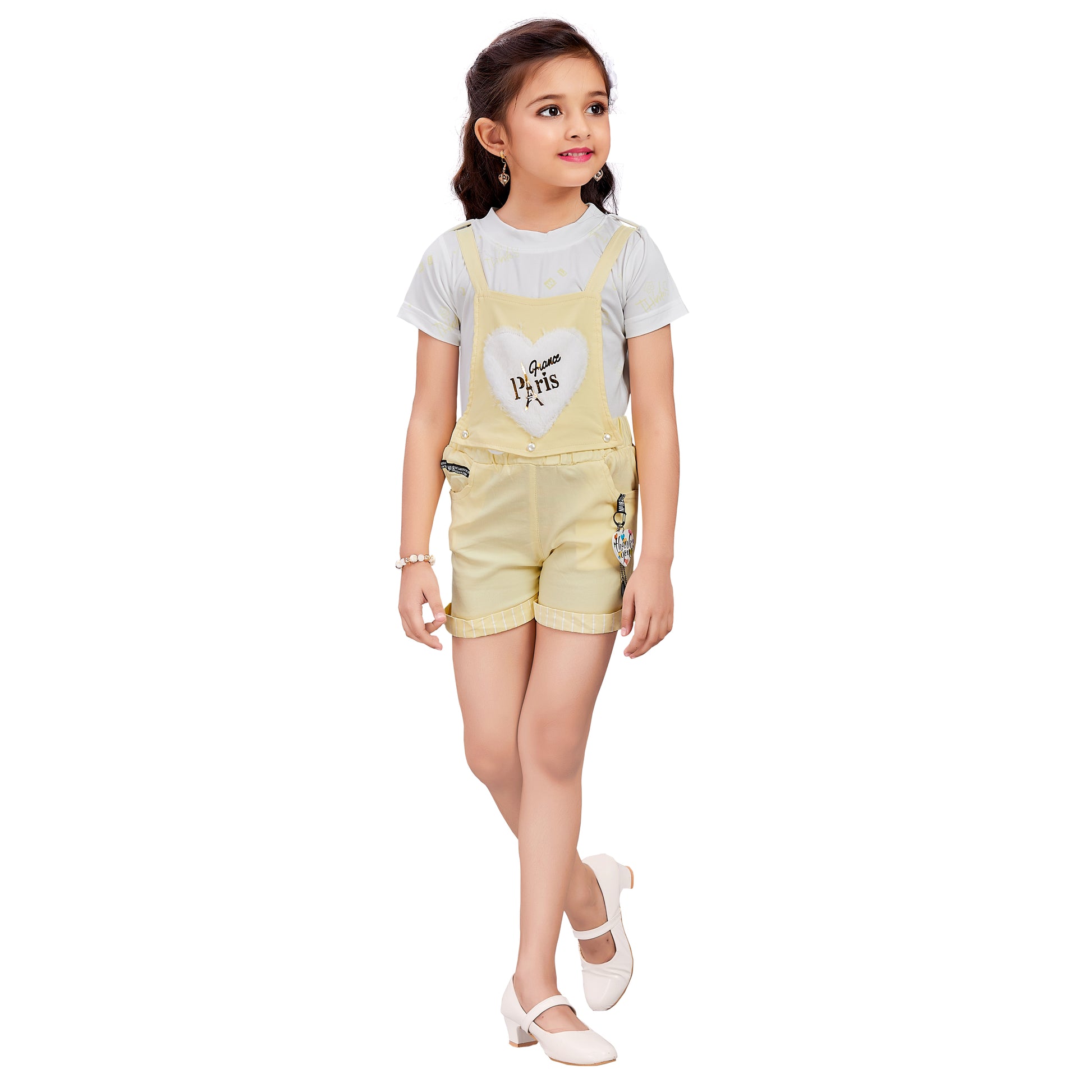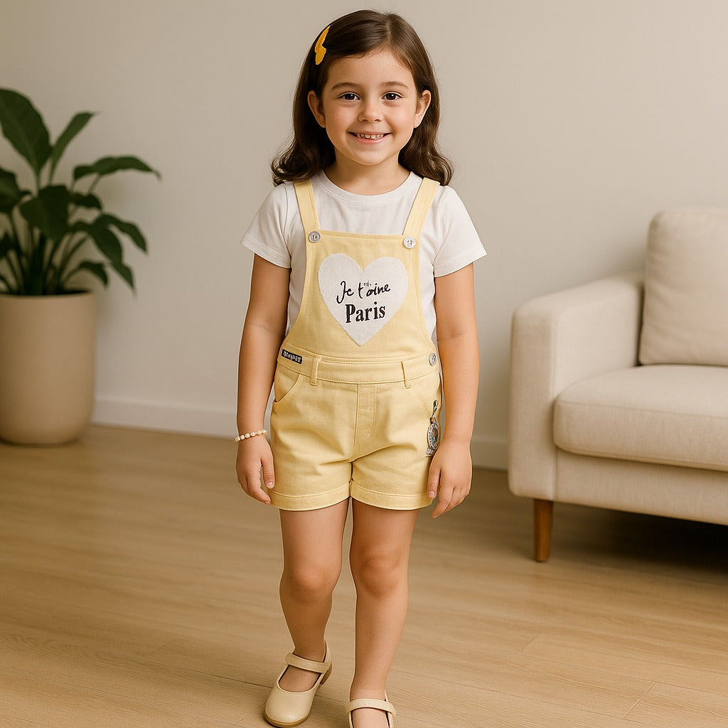 Girls Patch Work Dungaree Set