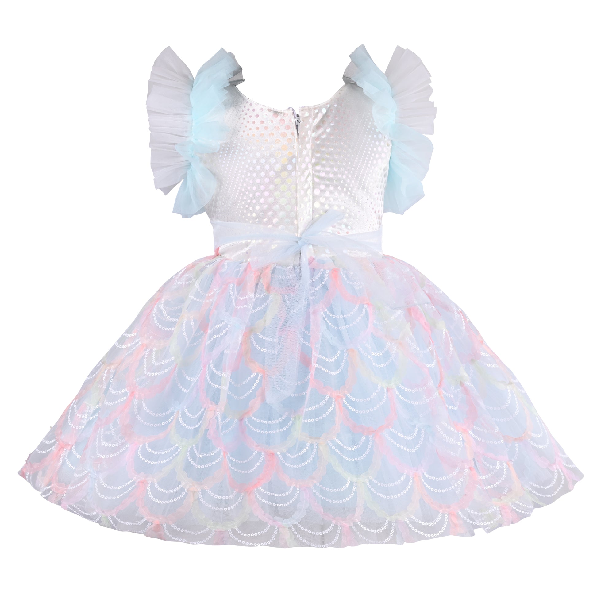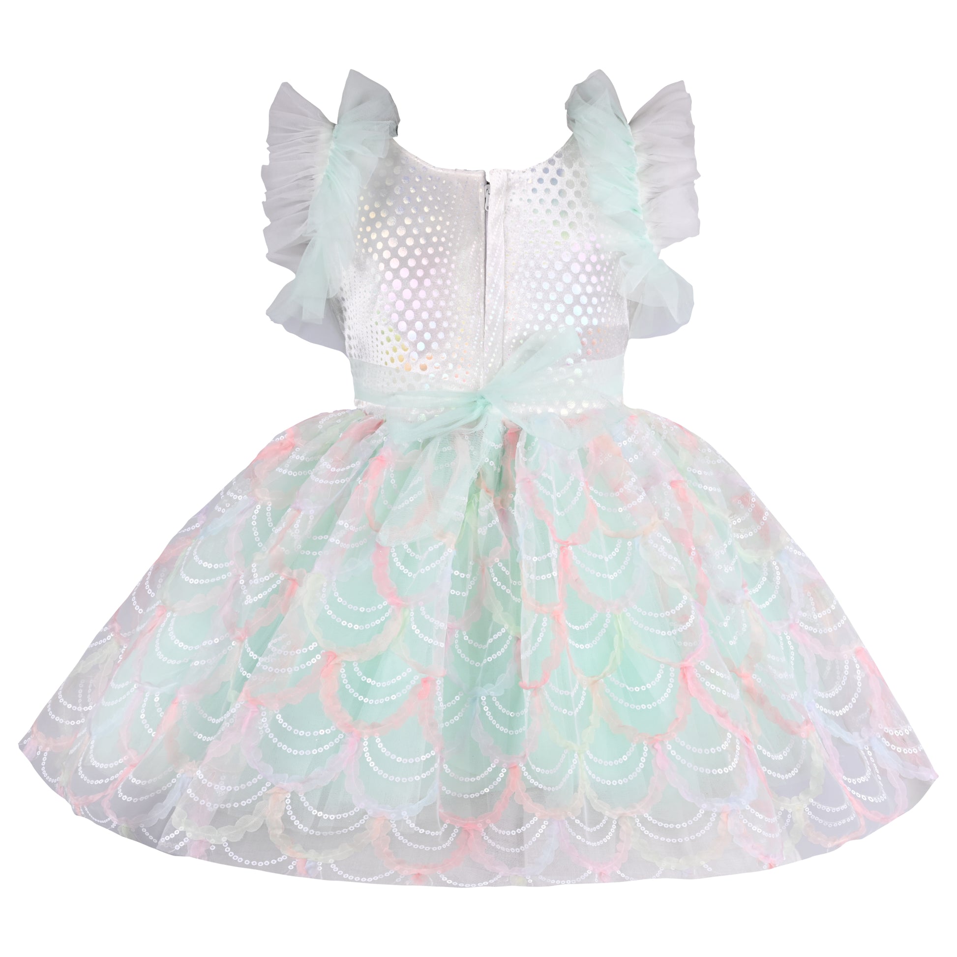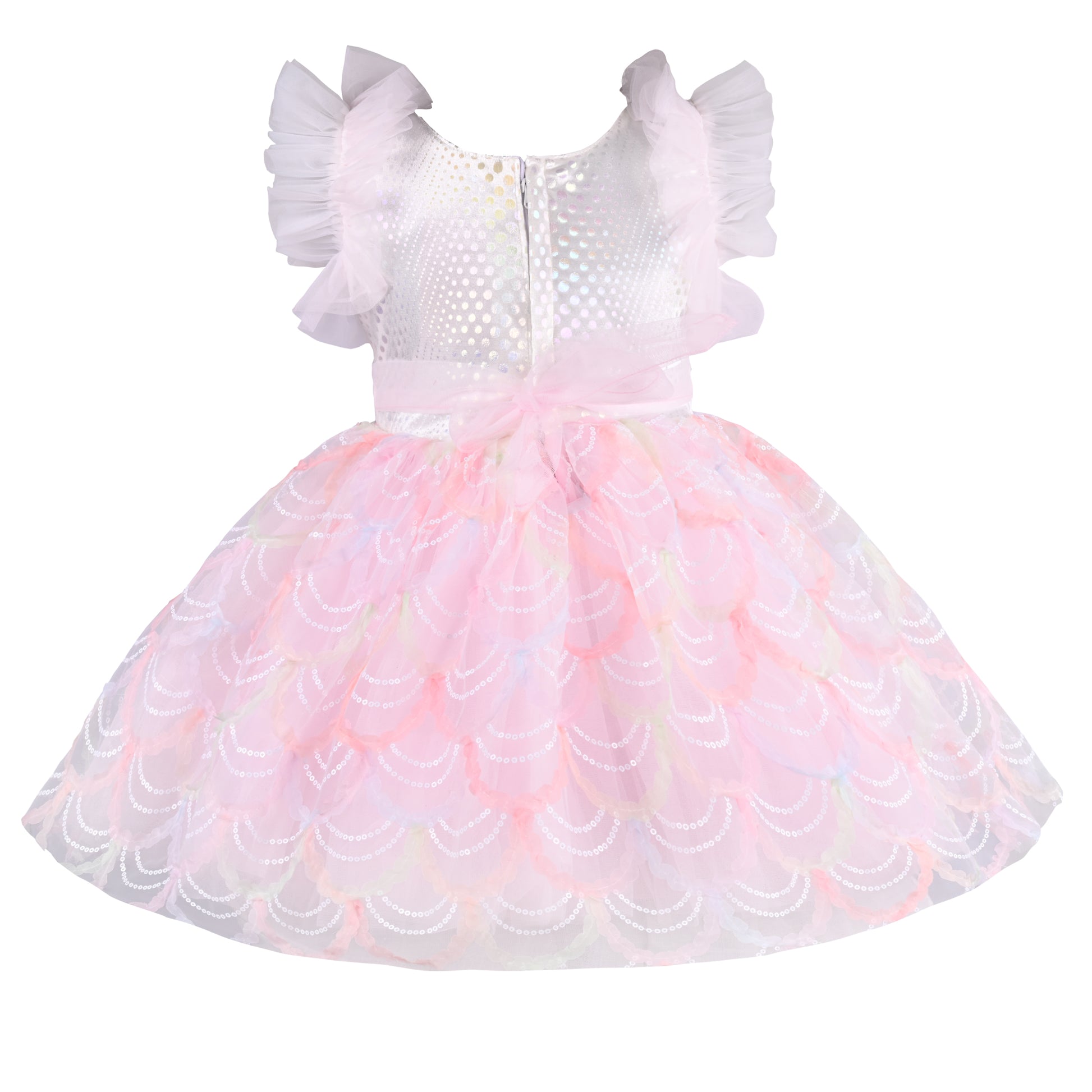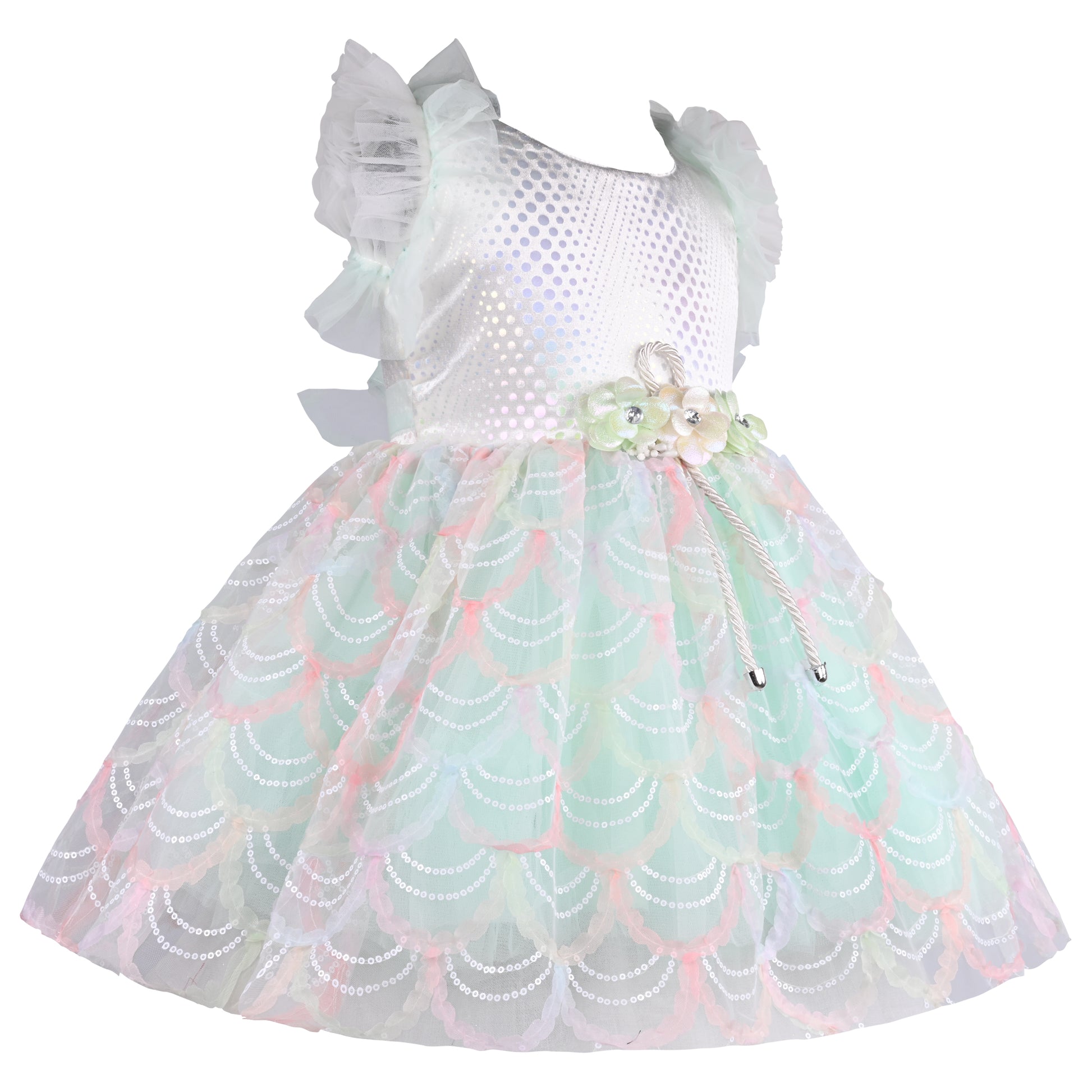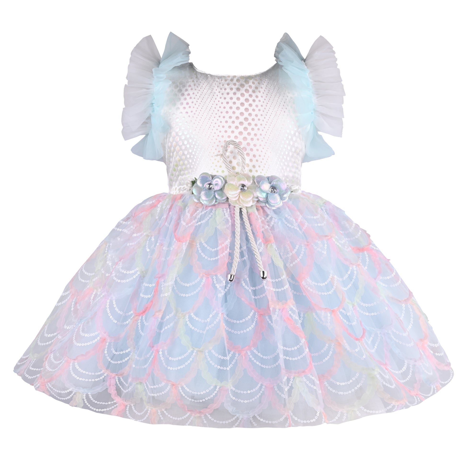 Make your little girl stand out at any celebration with this Girls Floral Embellished Ruffle Flared Party Dress. Adorned with delicate floral detailing and dramatic ruffle layers, this dress offers a fairytale vibe with every twirl. Soft fabric and a flared silhouette ensure both comfort and style—ideal for birthdays, weddings, or festive events.