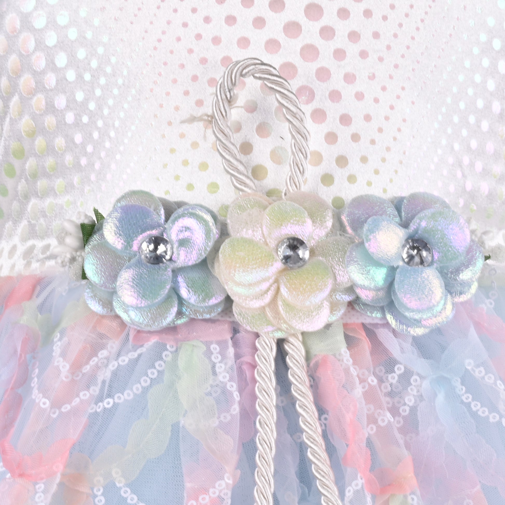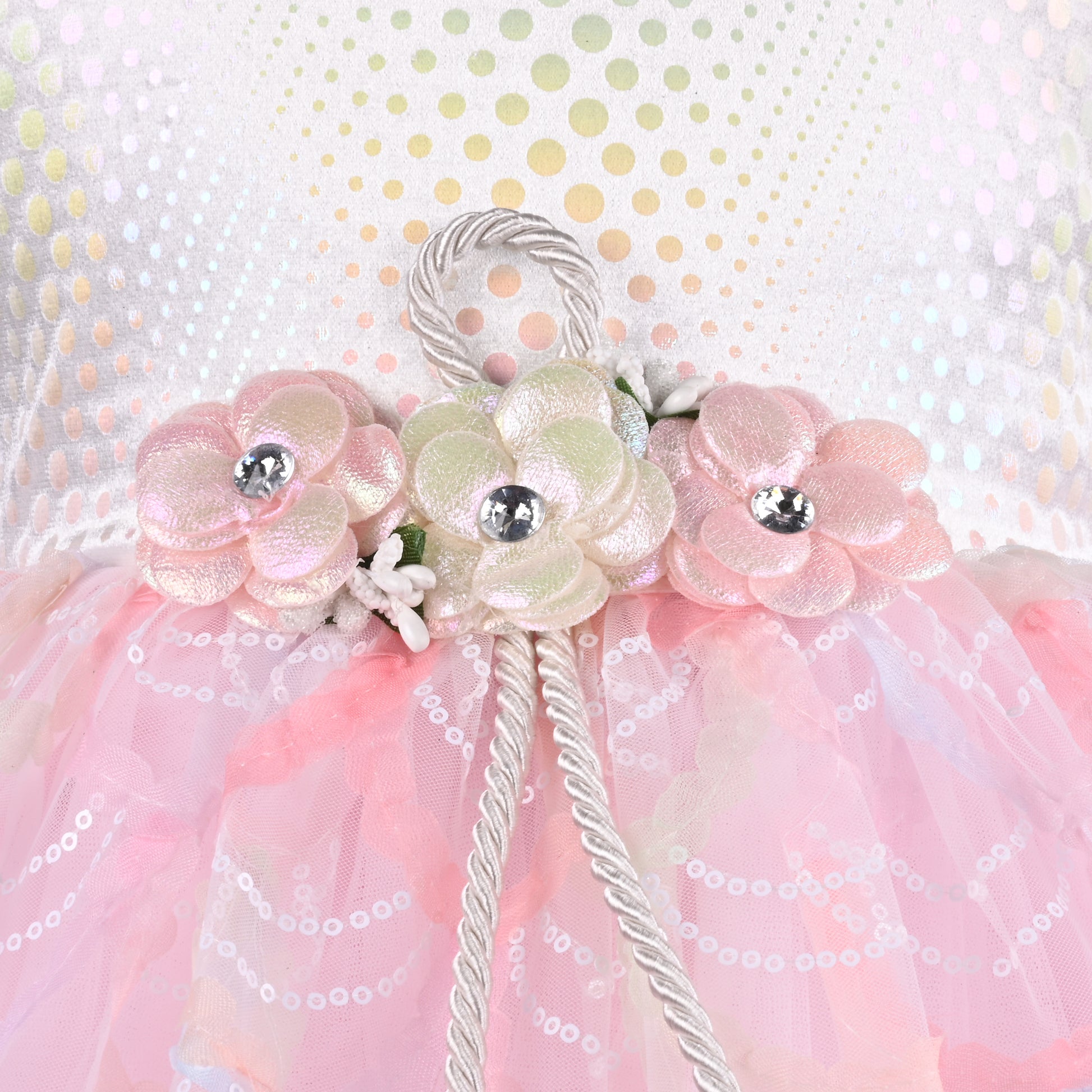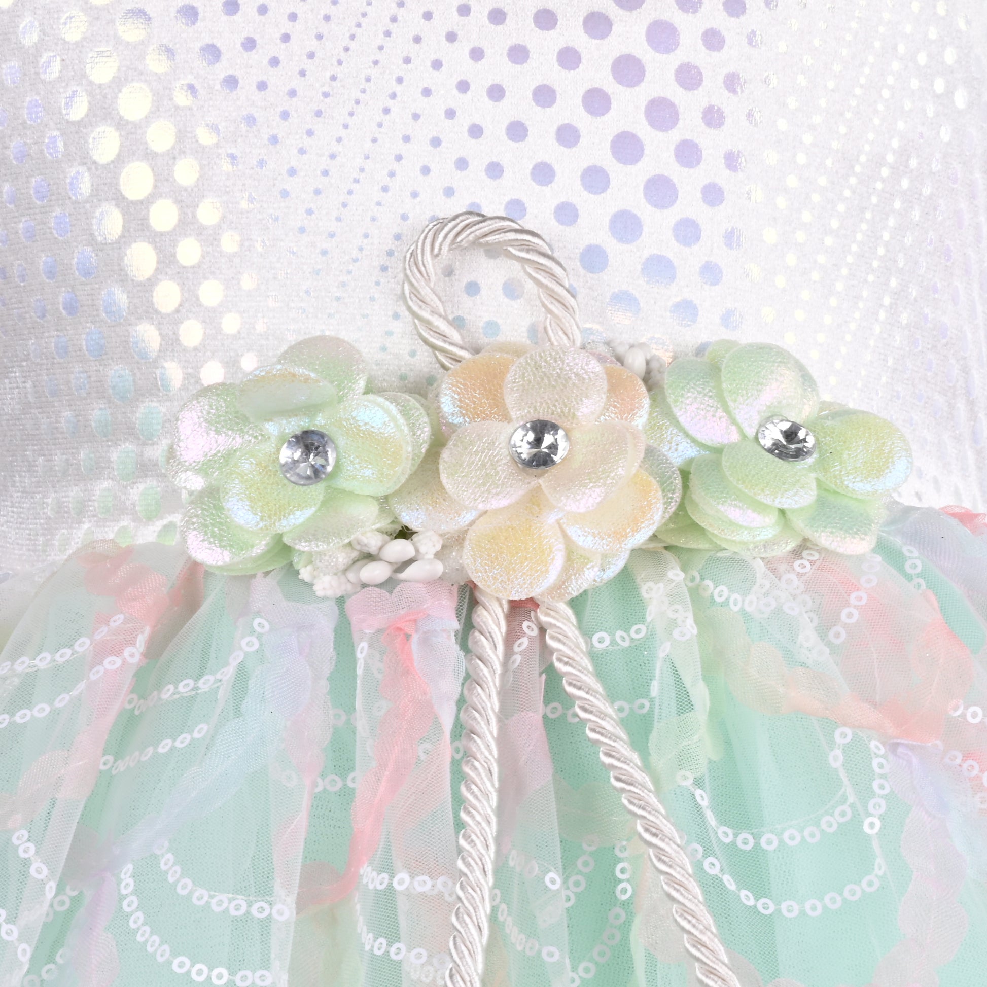 - Design: Beautiful floral embellishments on the waist with cascading ruffles for a dreamy look