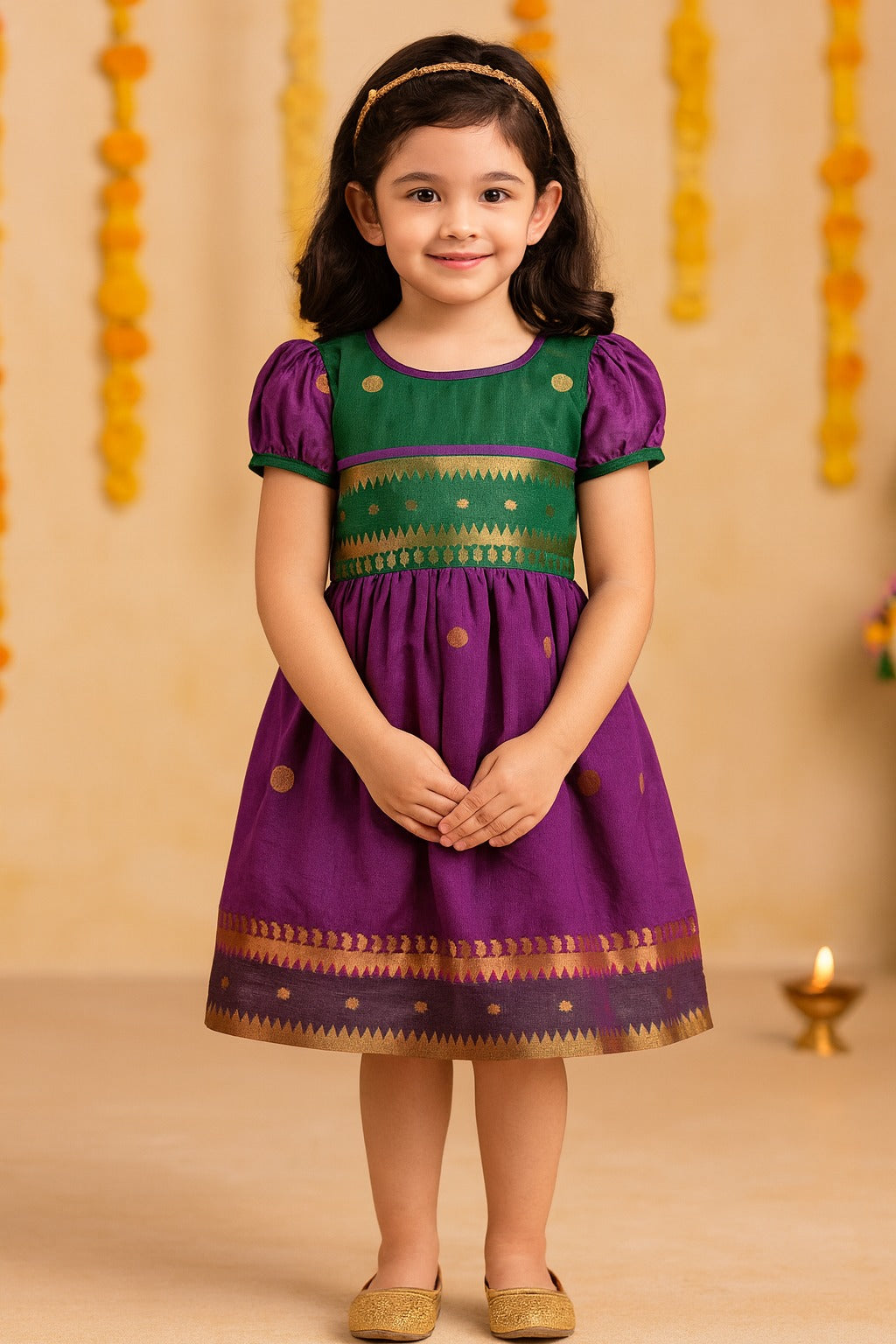 Elevate your little one's style with our Ethnic Collection, perfect for festivities, functions, small occasions, and events. Whether it's a special Pooja, a family gathering, or a festive party, our exquisite range of traditional wear ensures your child shines with elegance and comfort. Simple and charming, this girl's embroidered top features delicate details and puffy sleeves. Elevate her style with this elegant piece that adds a touch of sophistication to any outfit.