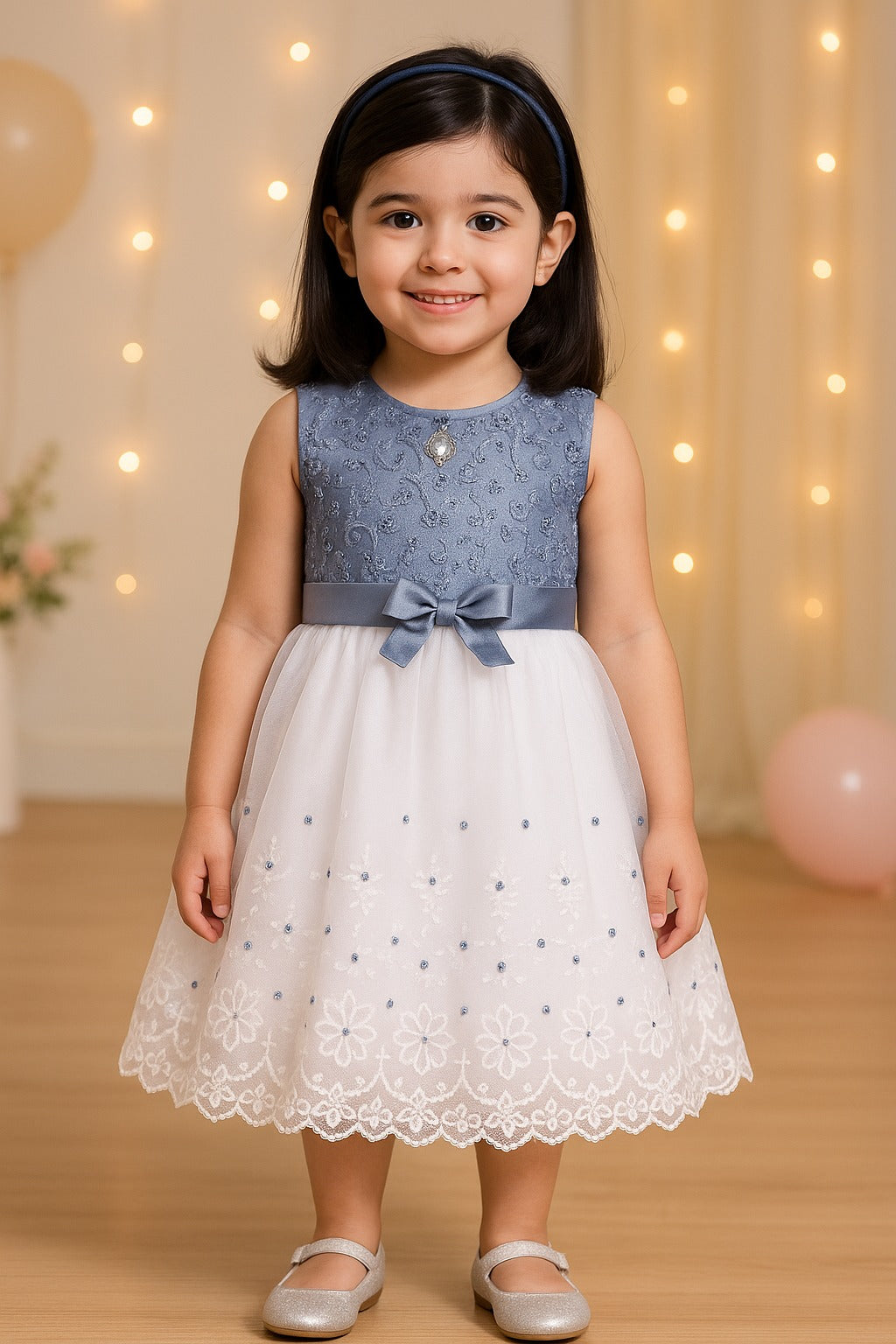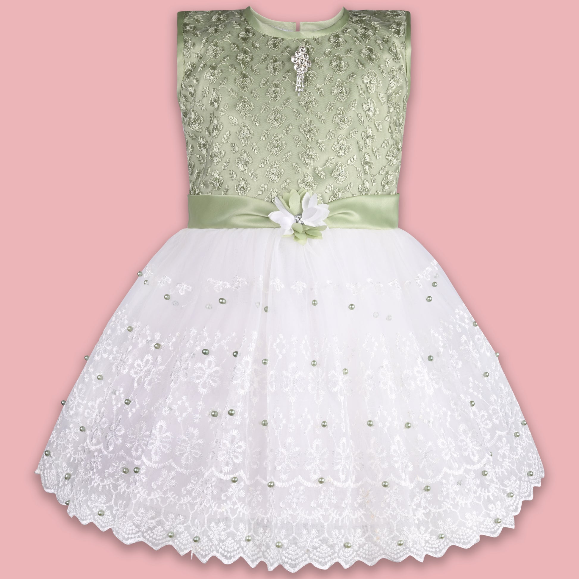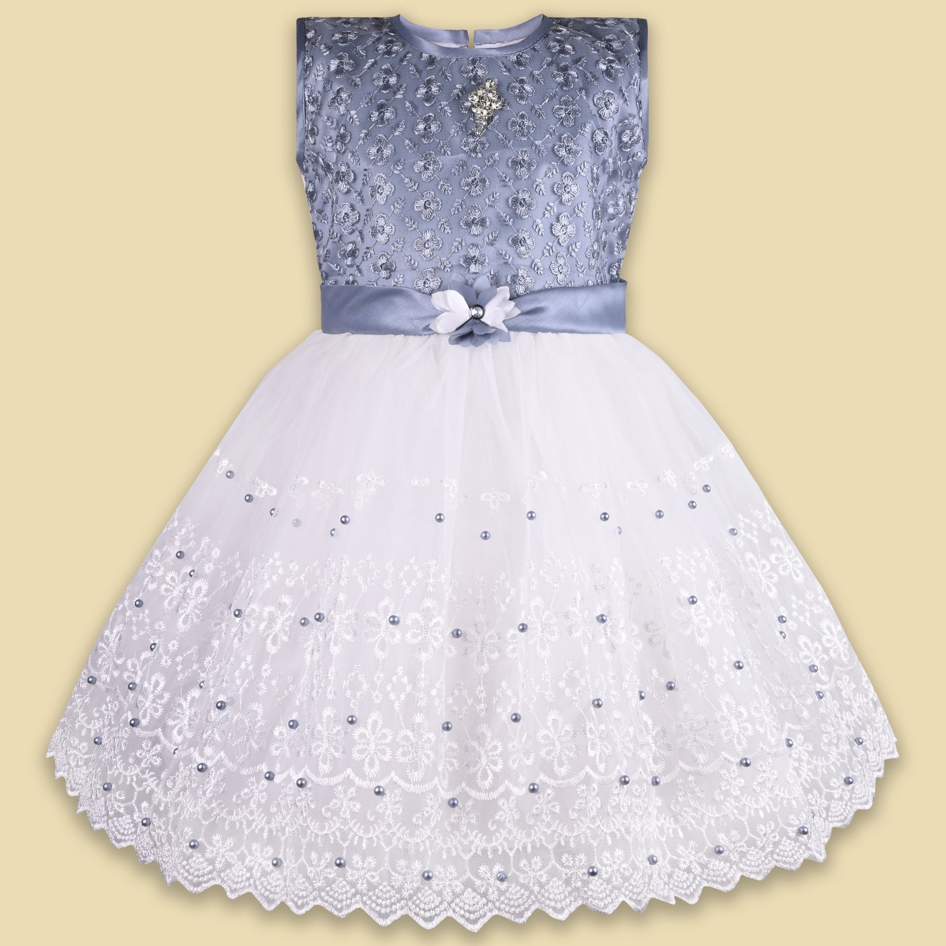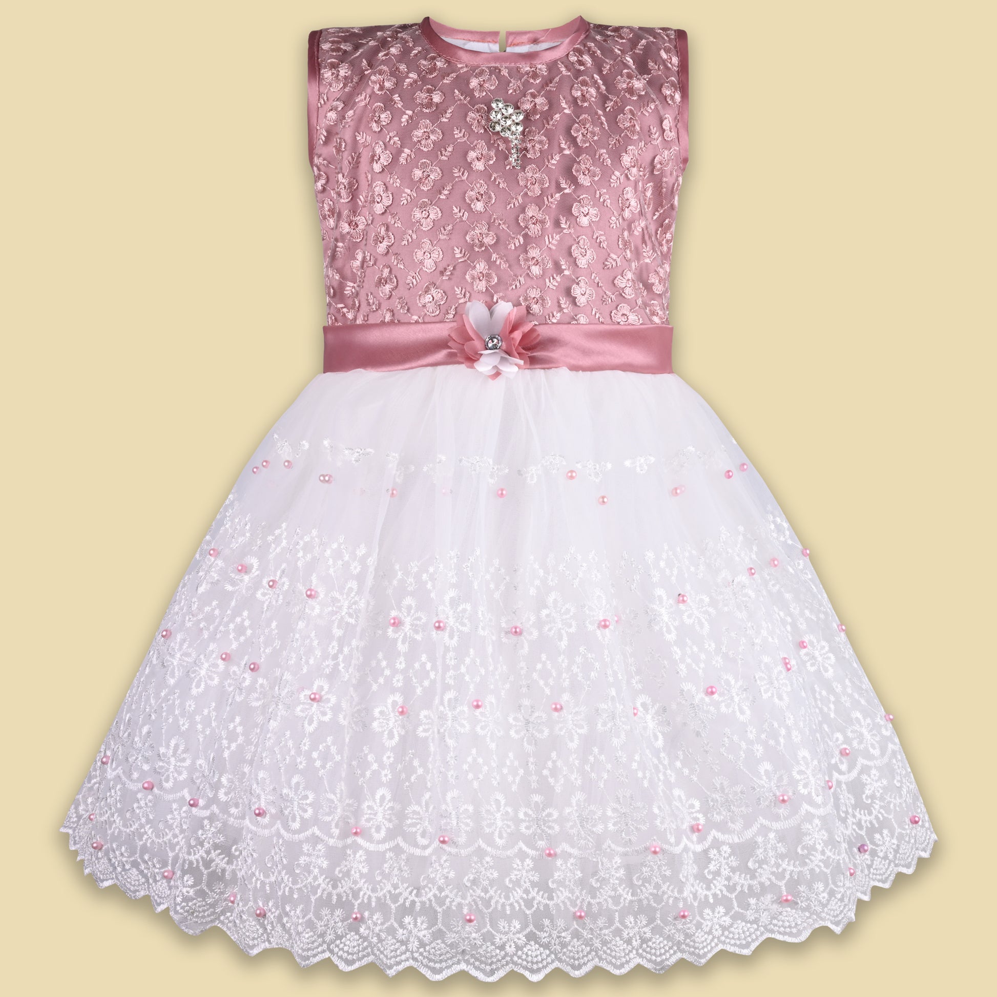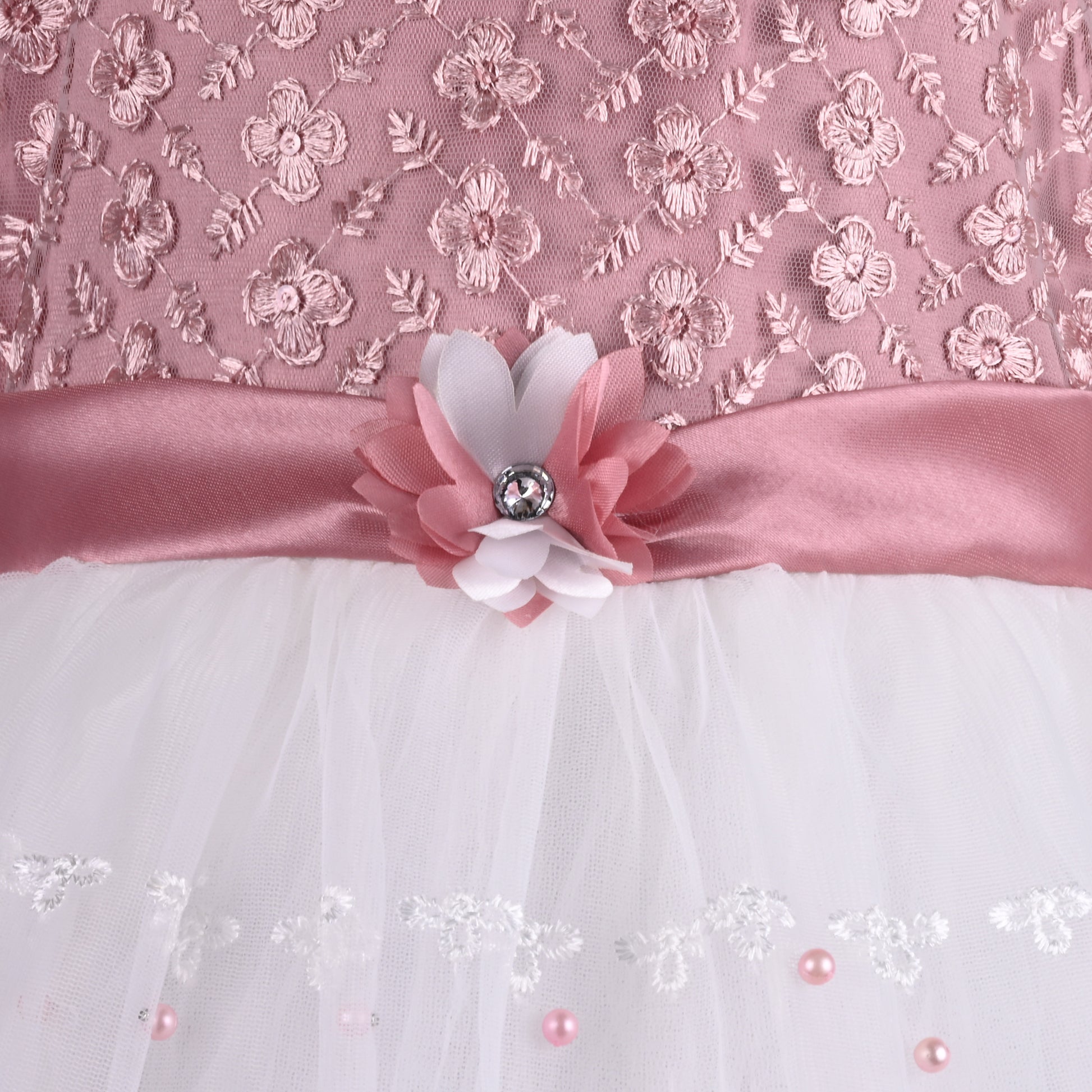 Girls Floral Embroidered and Pearl Embellished Party Dress