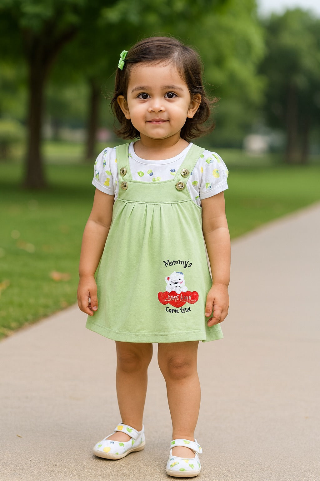 Girls Embroidered Puff Sleeve Frock Dress comes with Brief.