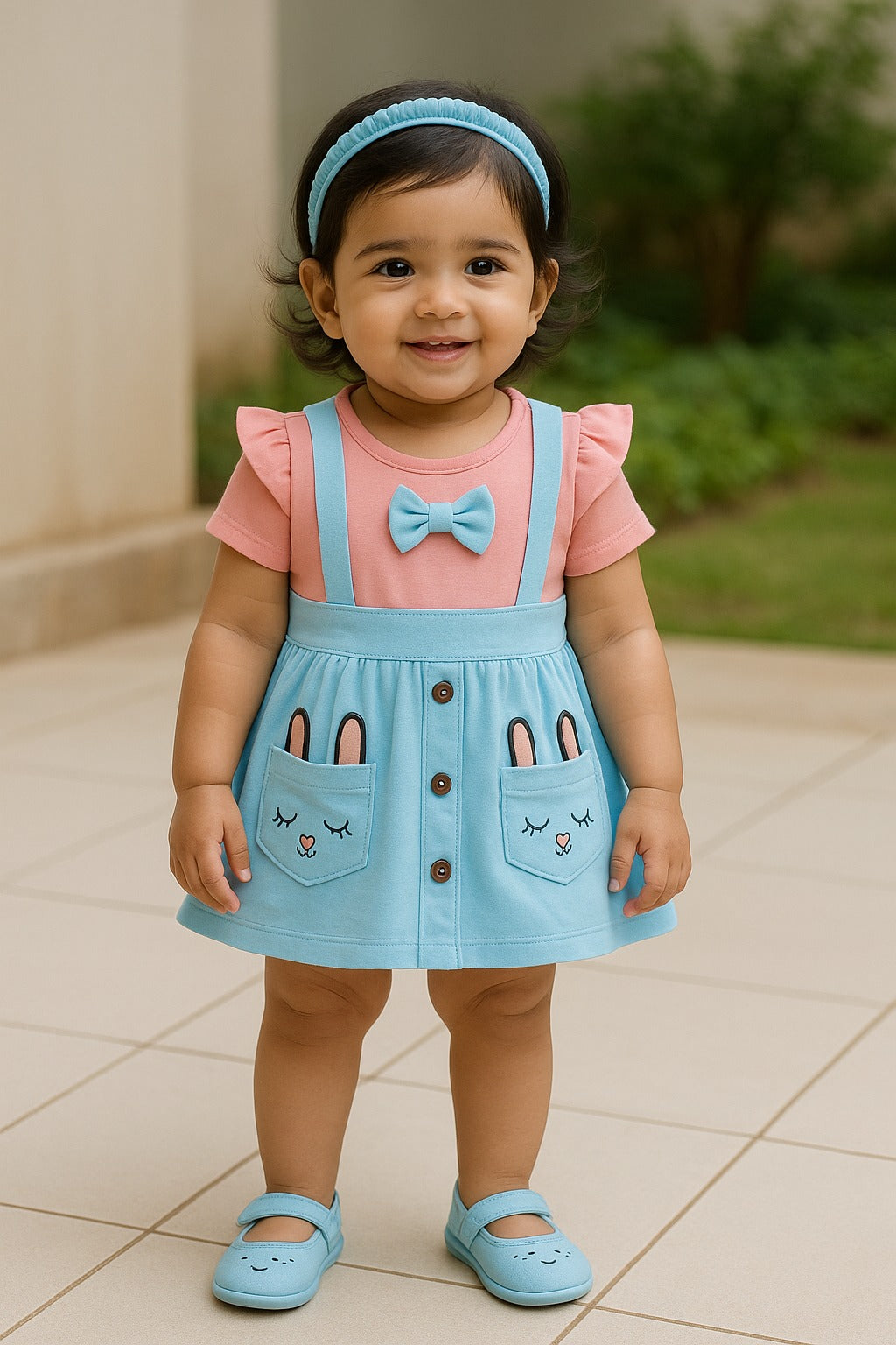 This Girls Embroidered Regular Sleeve Frock Dress is perfect for any occasion. Its A-Line design with knee length and bow near the waist creates a stylish look. Made with comfortable cotton fabric and a round neckline, it also comes with a matching brief for added convenience.