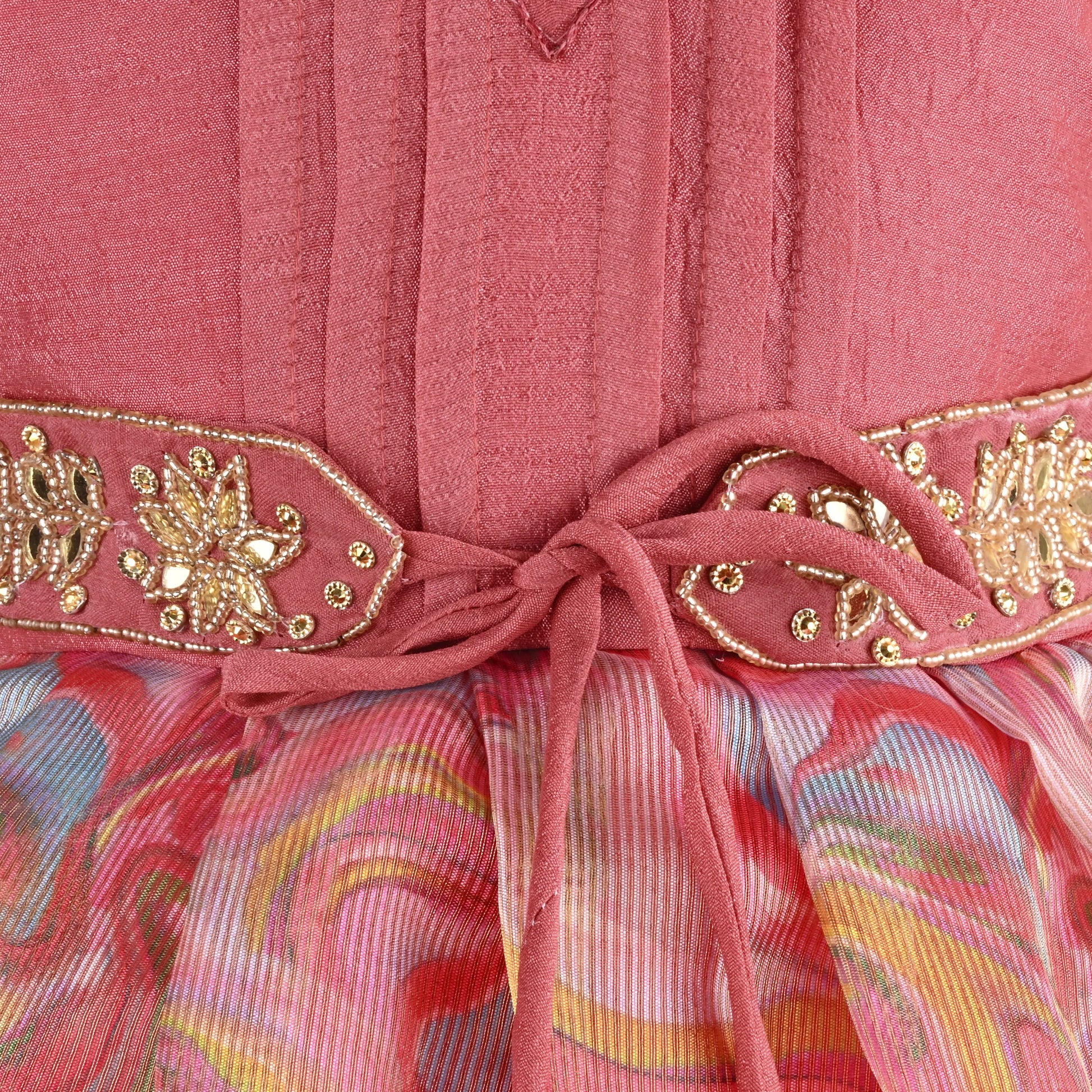 Girls Floral Bead Embellished Puff Sleeve Ethnic Dress