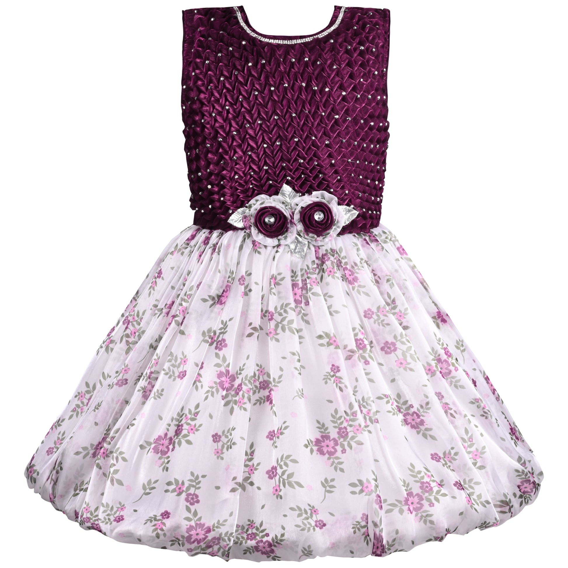Girls Floral Print Stone Embellished Party Dress
