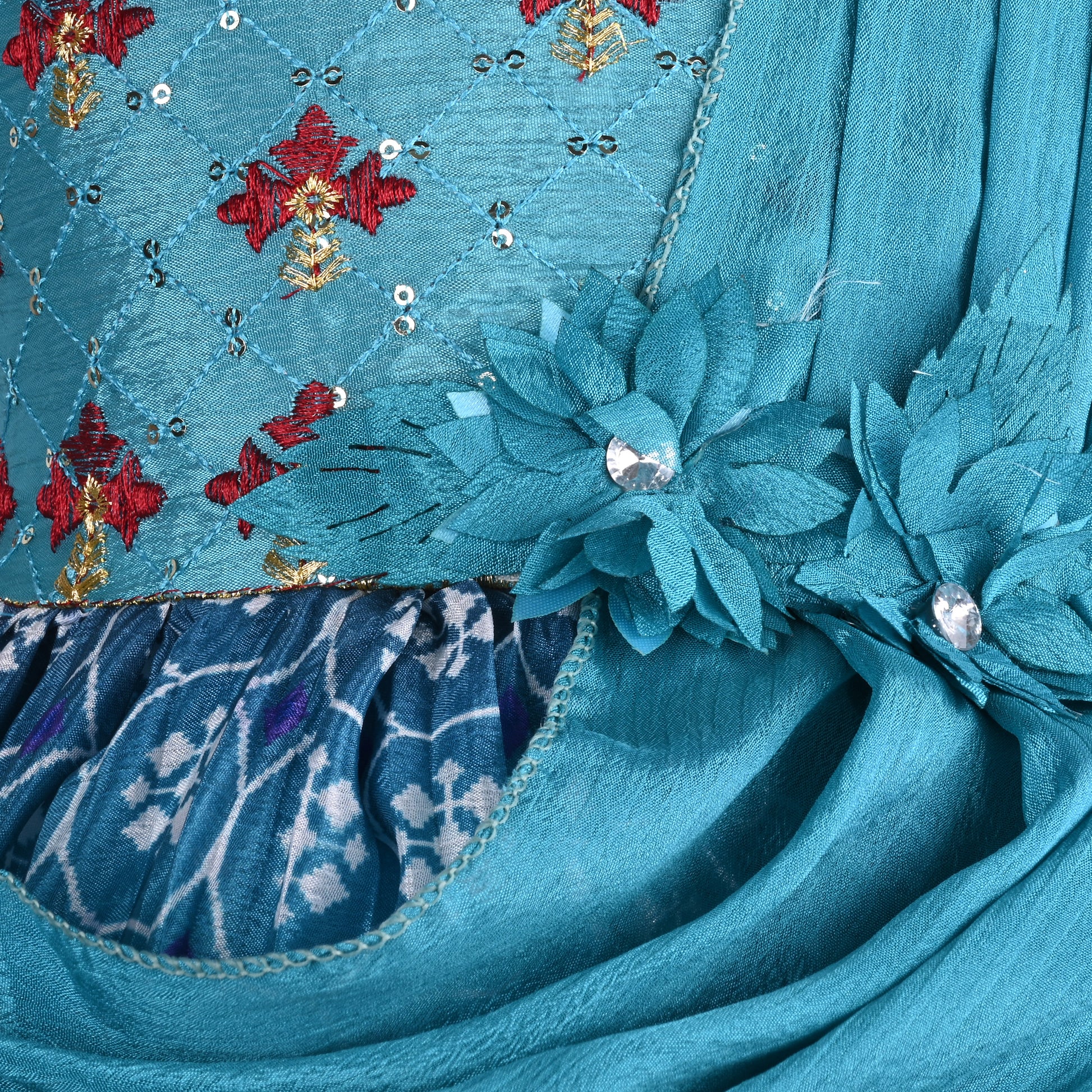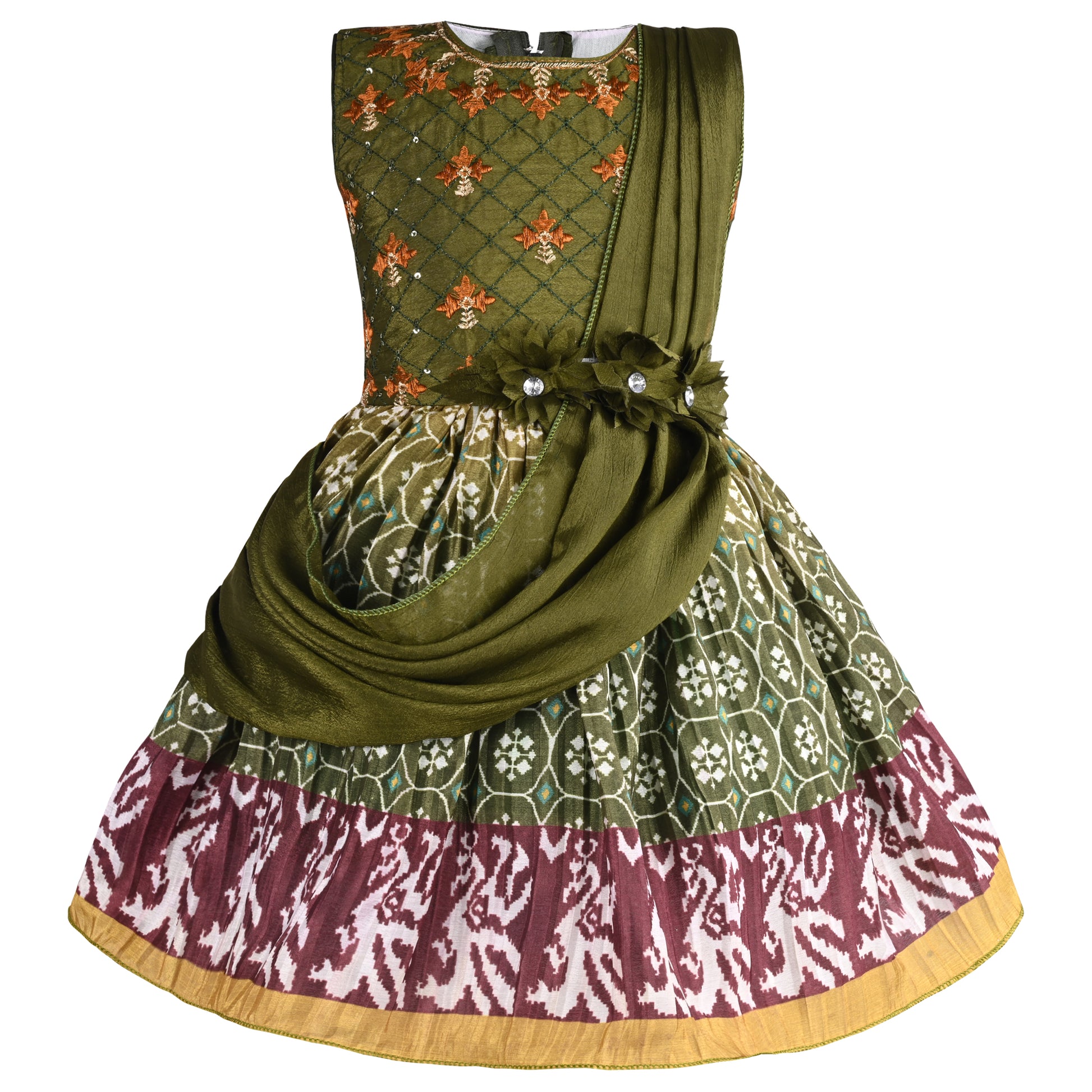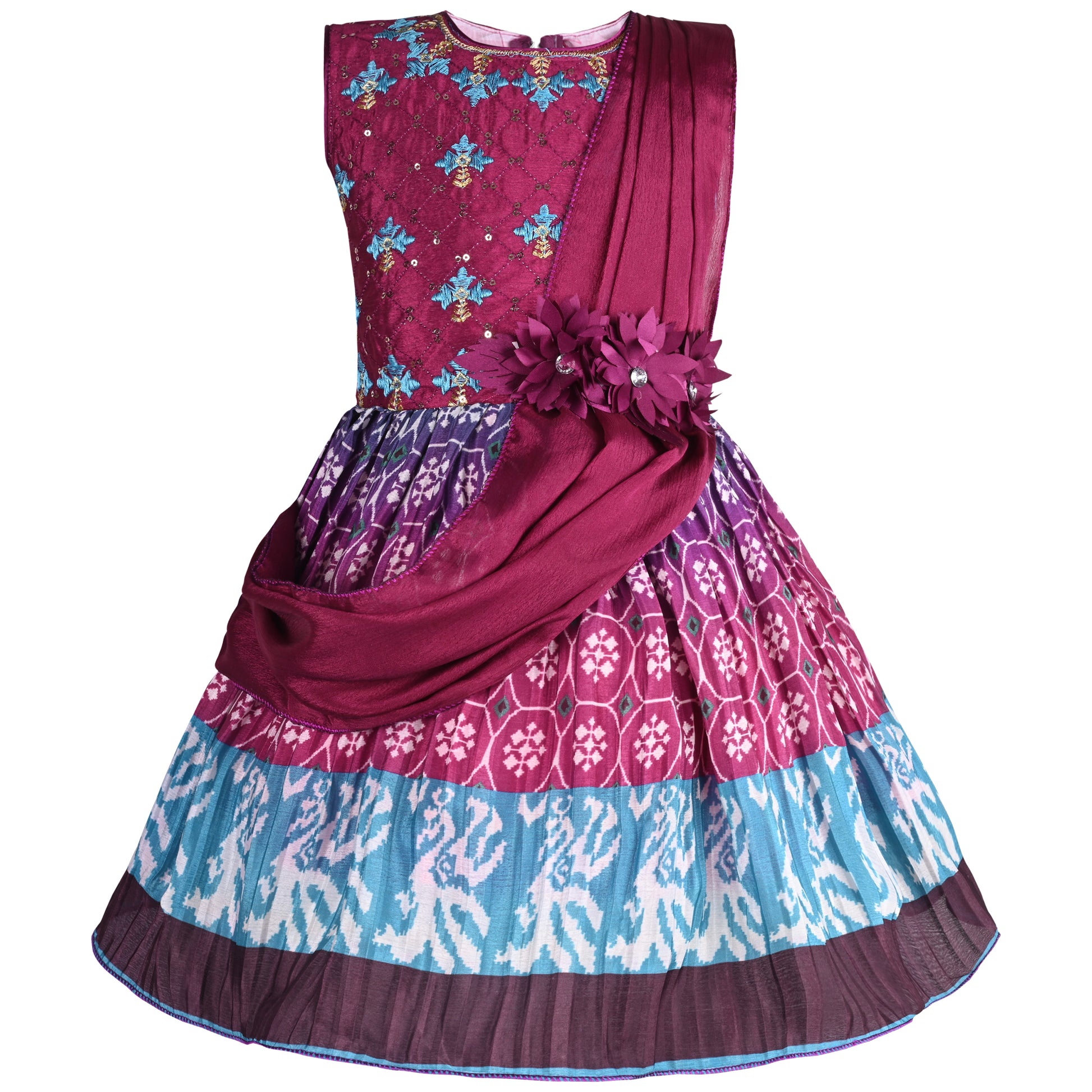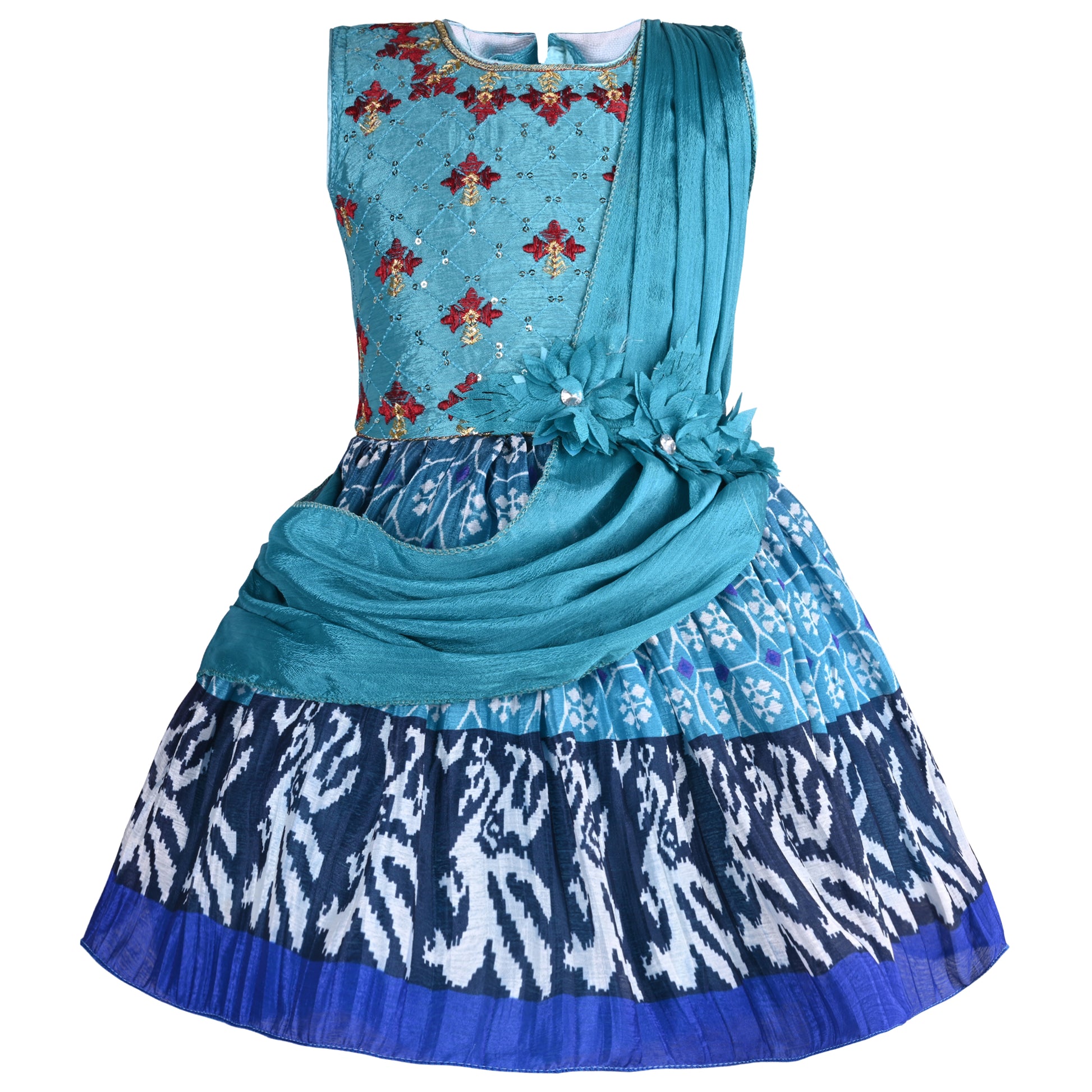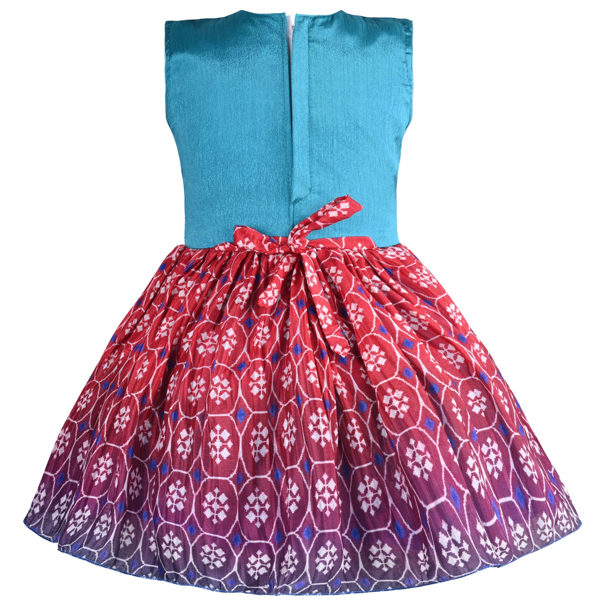 This dress is perfect for any girl with its charming floral print and flattering fit and flare design. The soft, flowy fabric ensures comfort while the stylish frock adds a touch of elegance. A must-have for any fashion-forward young lady.
