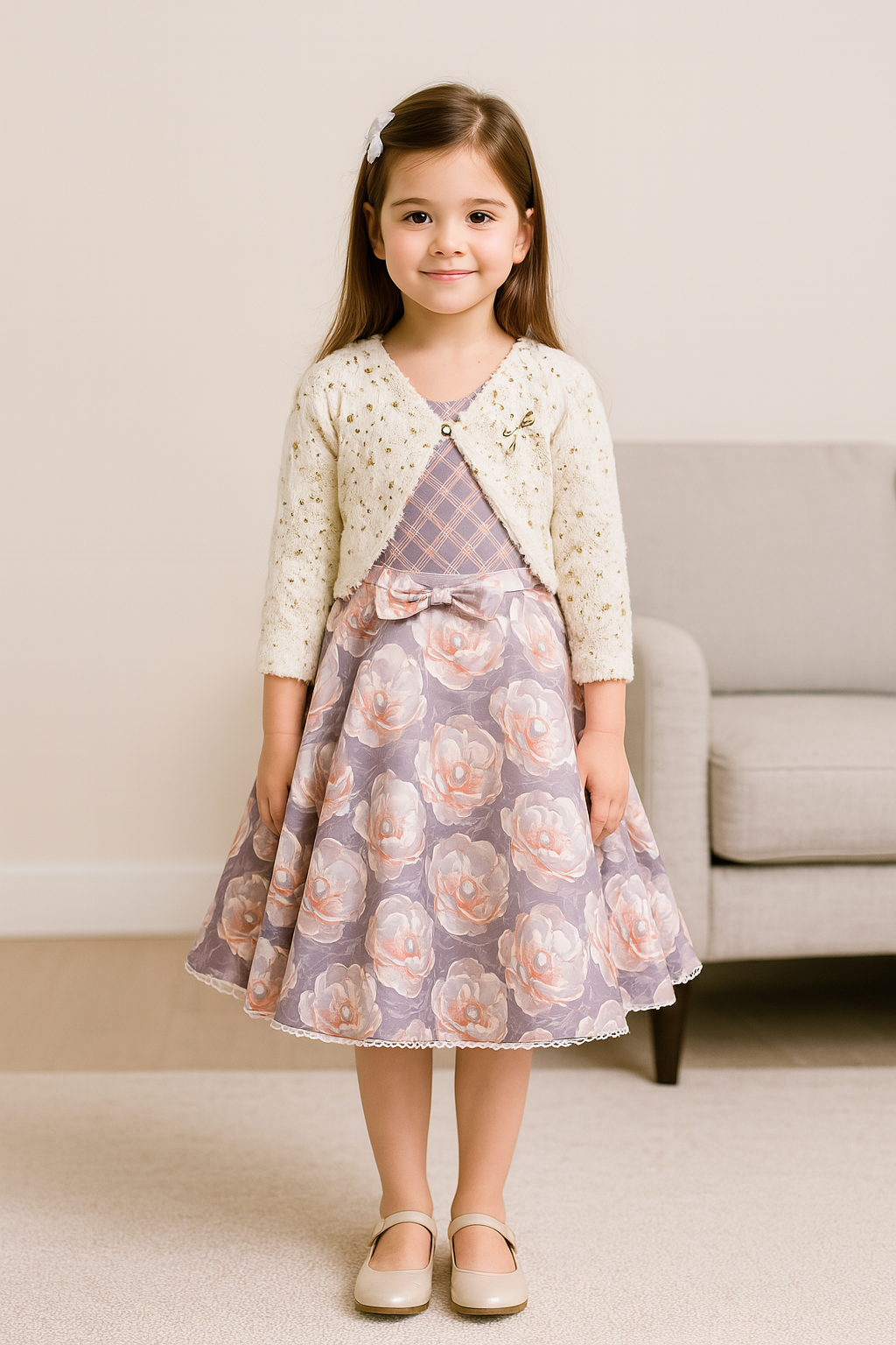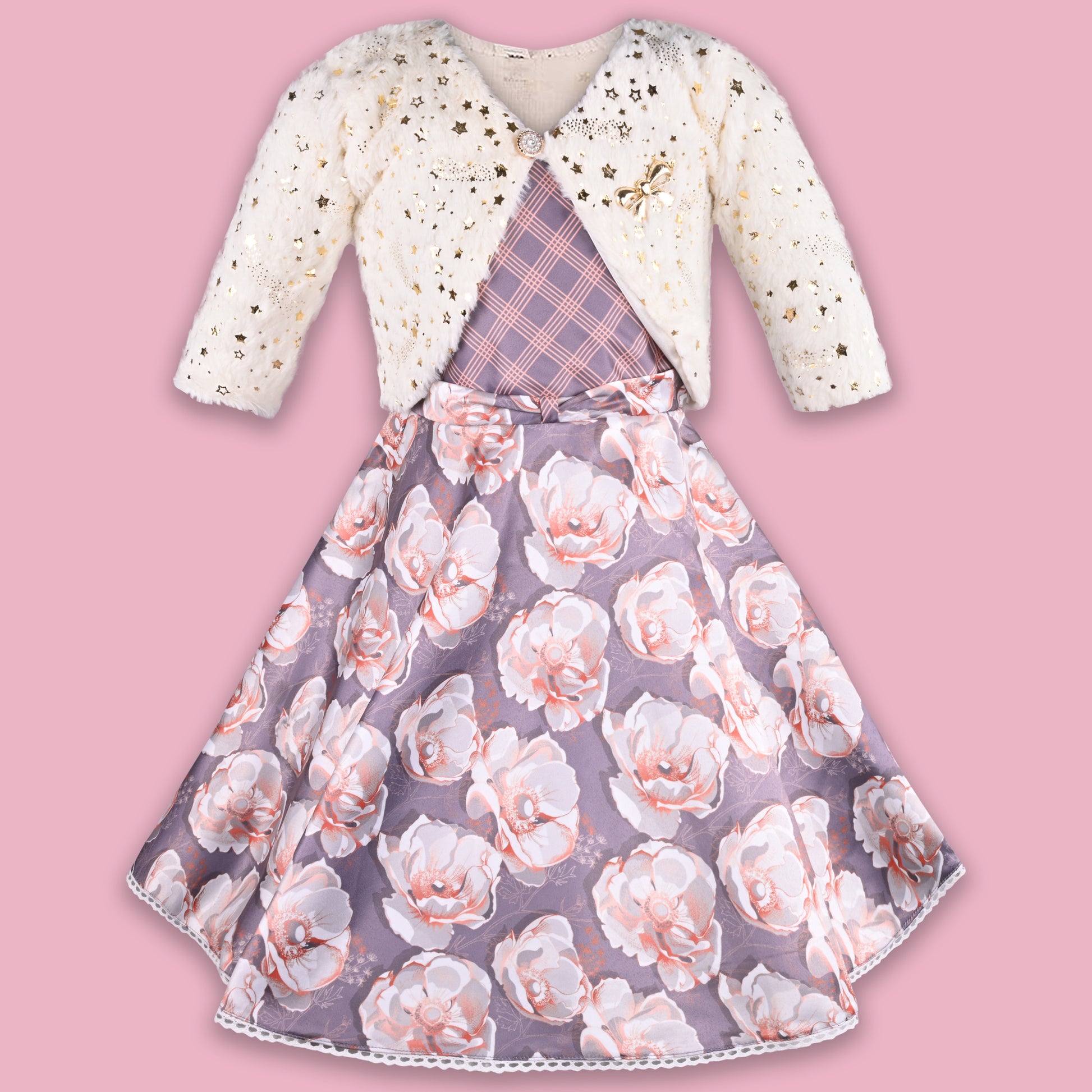Get ready to embrace the season in style with our Girls Floral Print Full Sleeve Fit and Flare Frock Dress. Featuring a beautiful floral print and full sleeves, this dress exudes elegance and comfort. Perfect for any occasion, it's a must-have in every little girl's wardrobe.