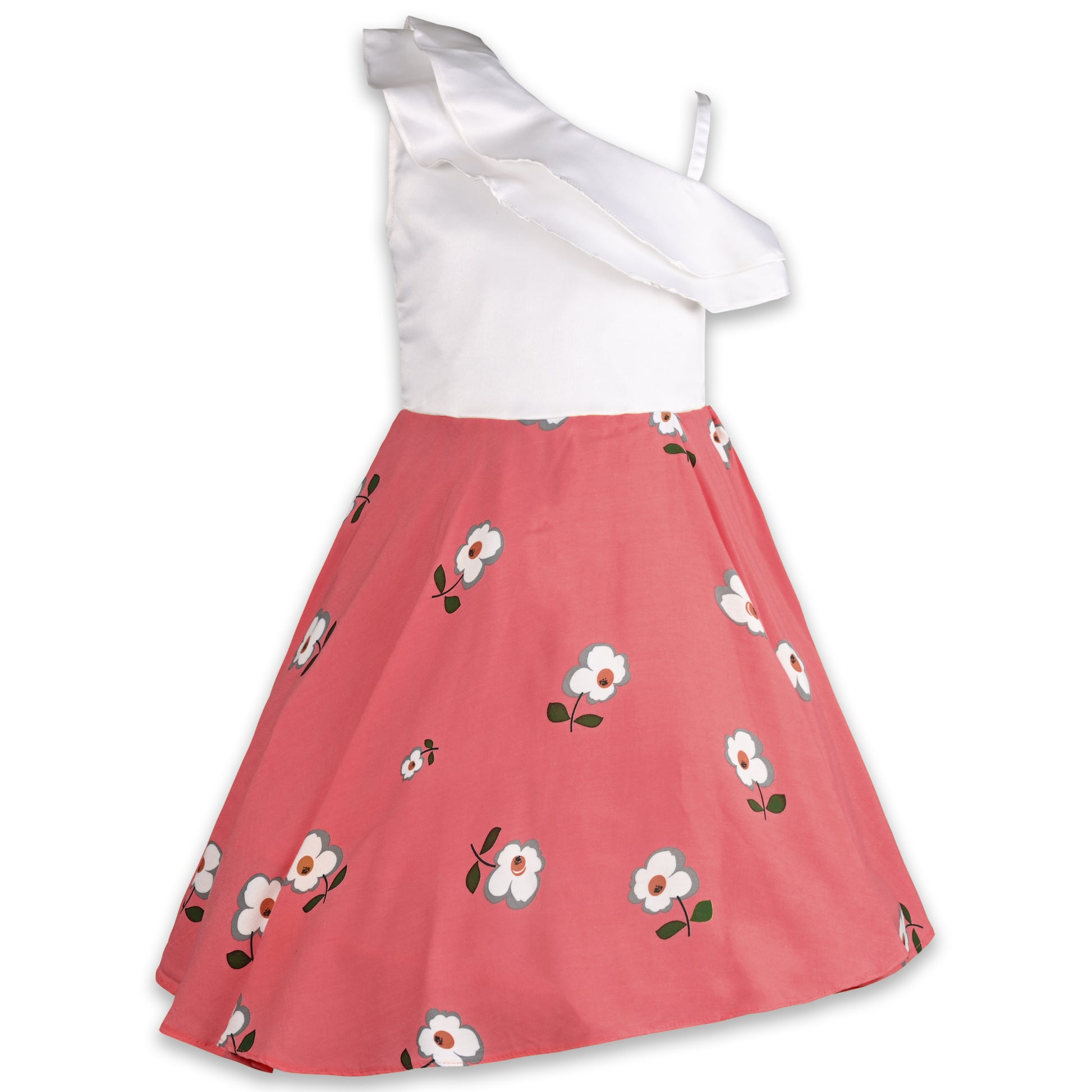 Girls Floral Print One shoulder Sleeve A-Line Frock Dress