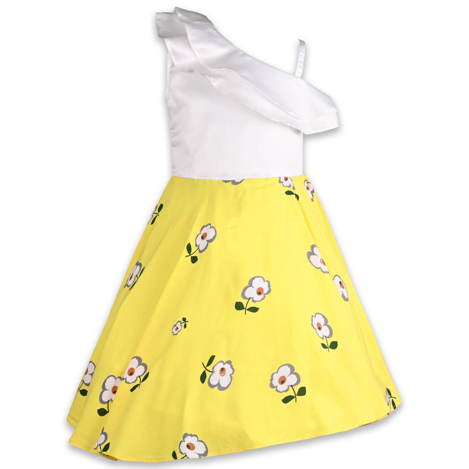 Girls Floral Print One shoulder Sleeve A-Line Frock Dress