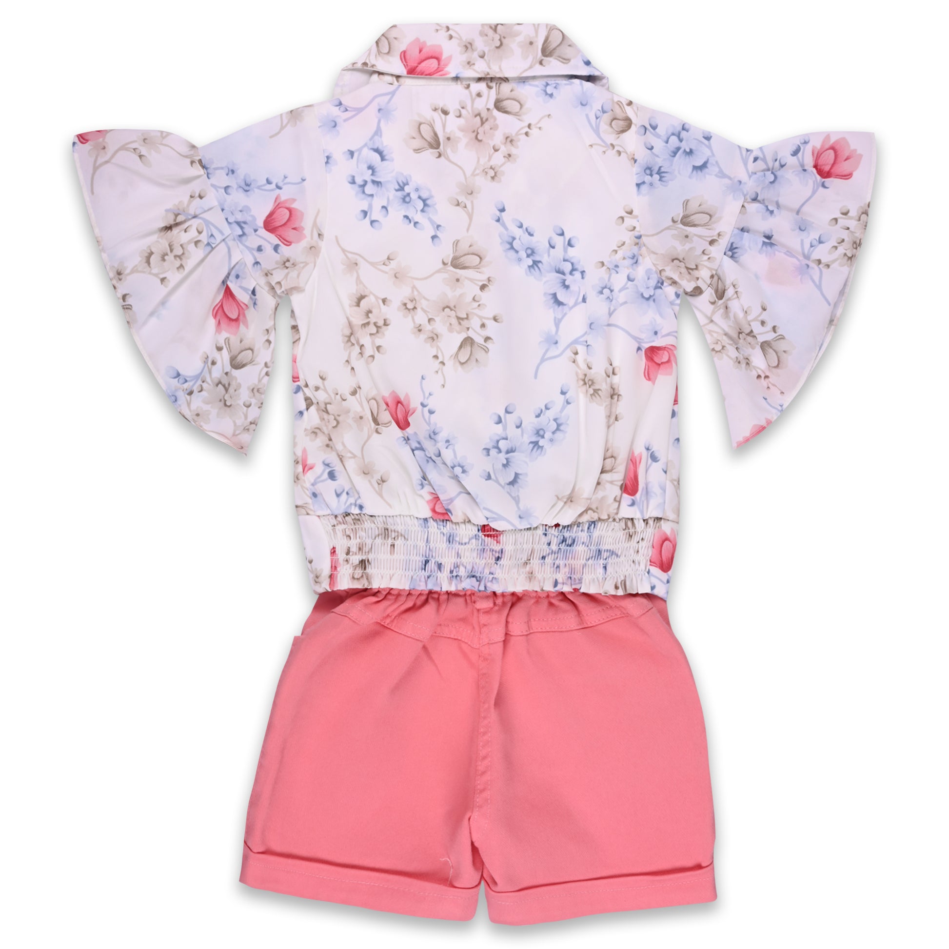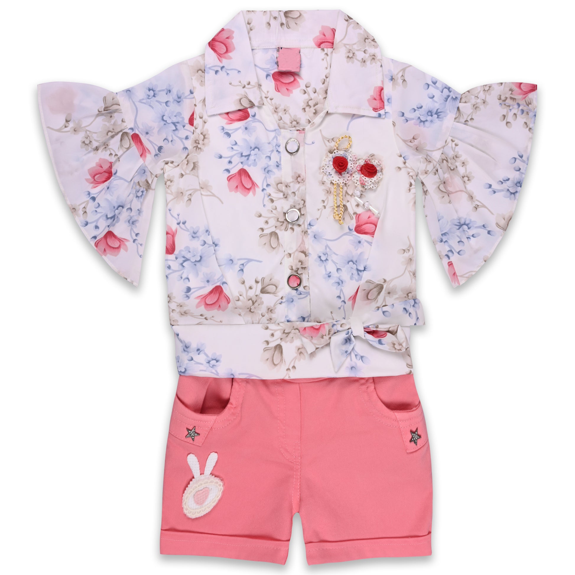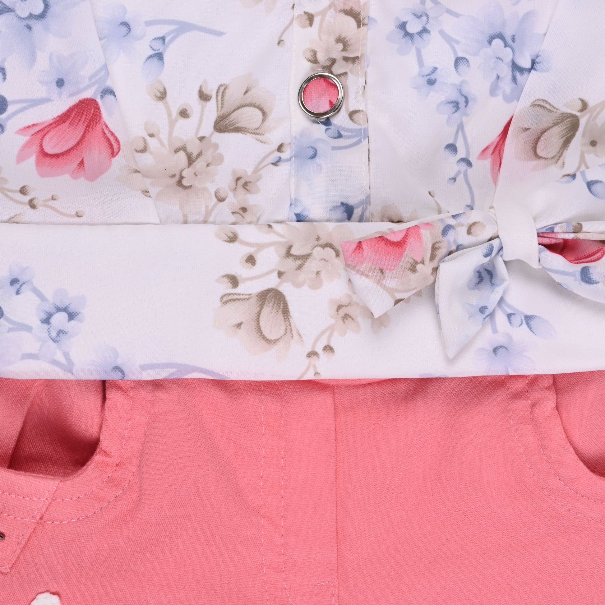 This clothing set features a cute and vibrant floral print design that is perfect for any little girl. The lightweight fabric ensures comfort and breathability, making it suitable for everyday wear. The set includes a matching top and shorts, making it a convenient and stylish outfit choice.