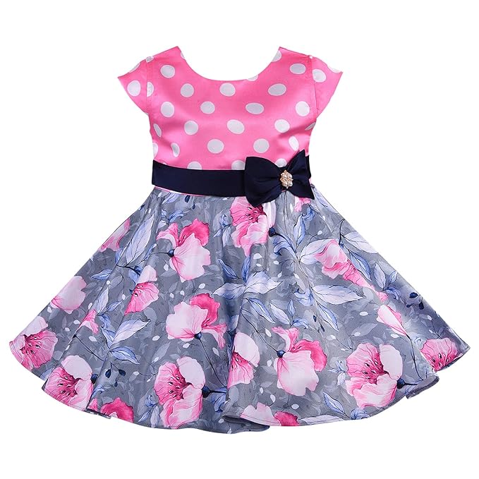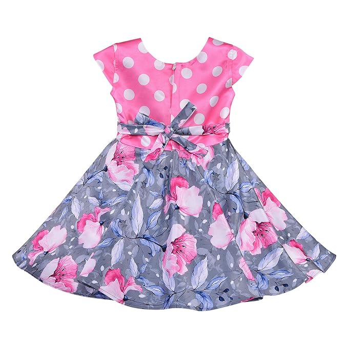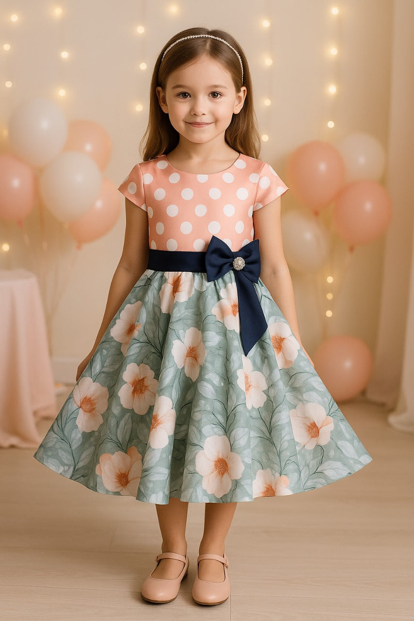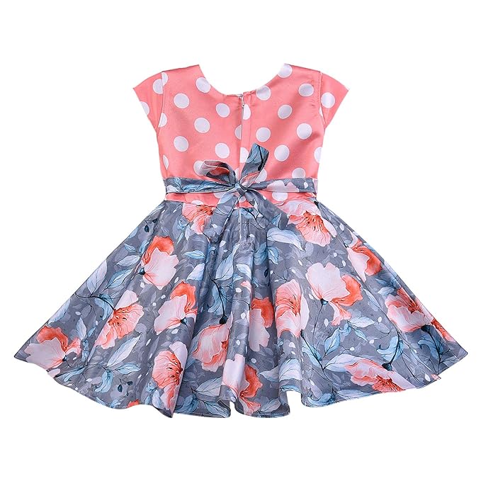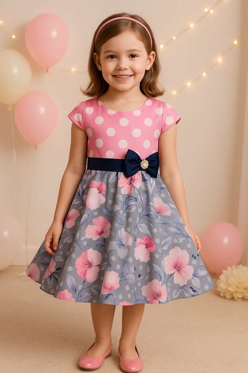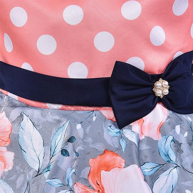 Girls Floral Printed A-line Summer Dress with Polka Dots