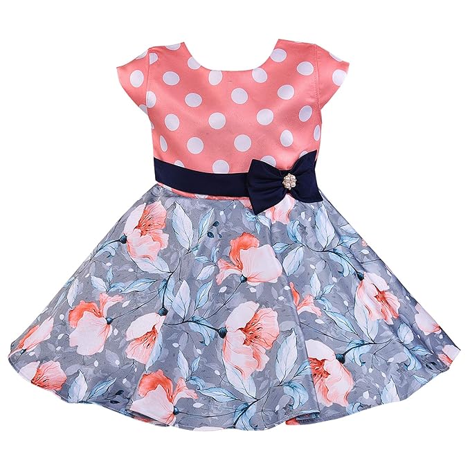 Girls Floral Printed A-line Summer Dress with Polka Dots