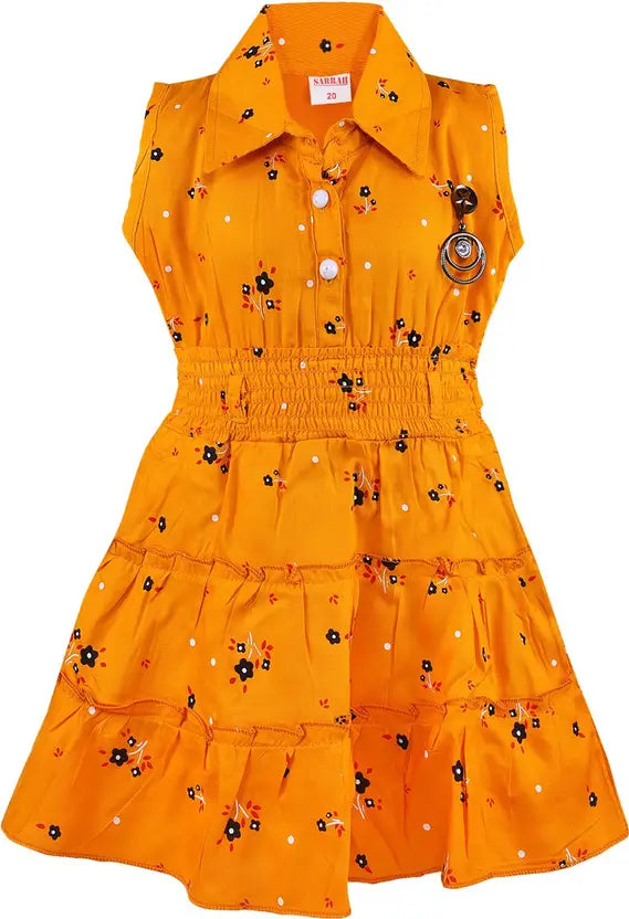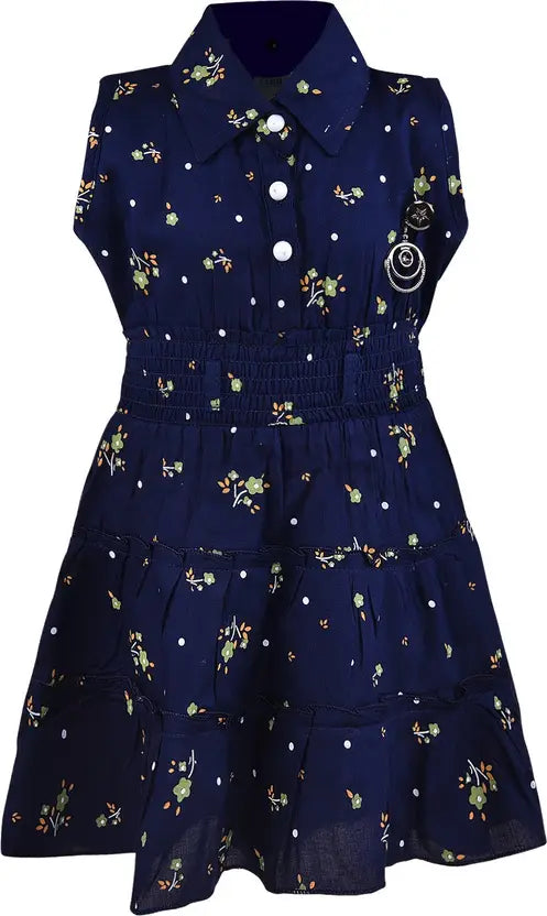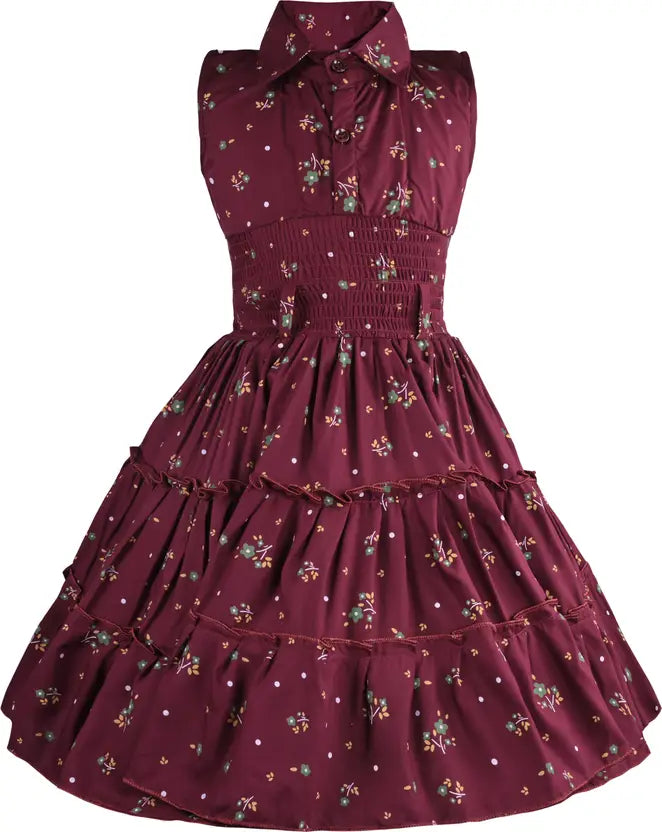 Girls Floral Printed Button Up Collar Summer Casual Dress